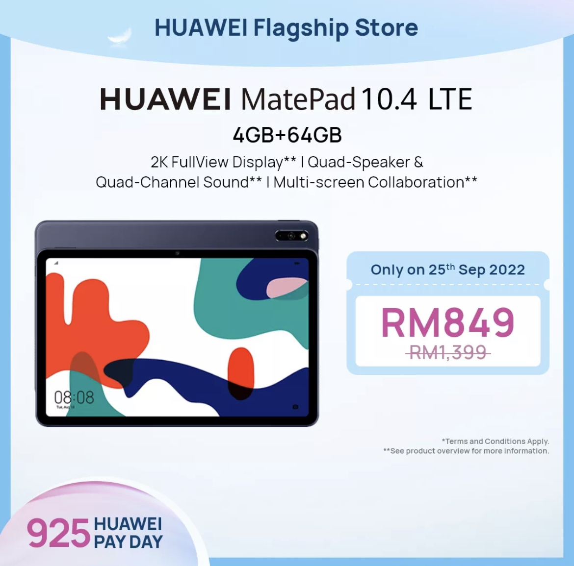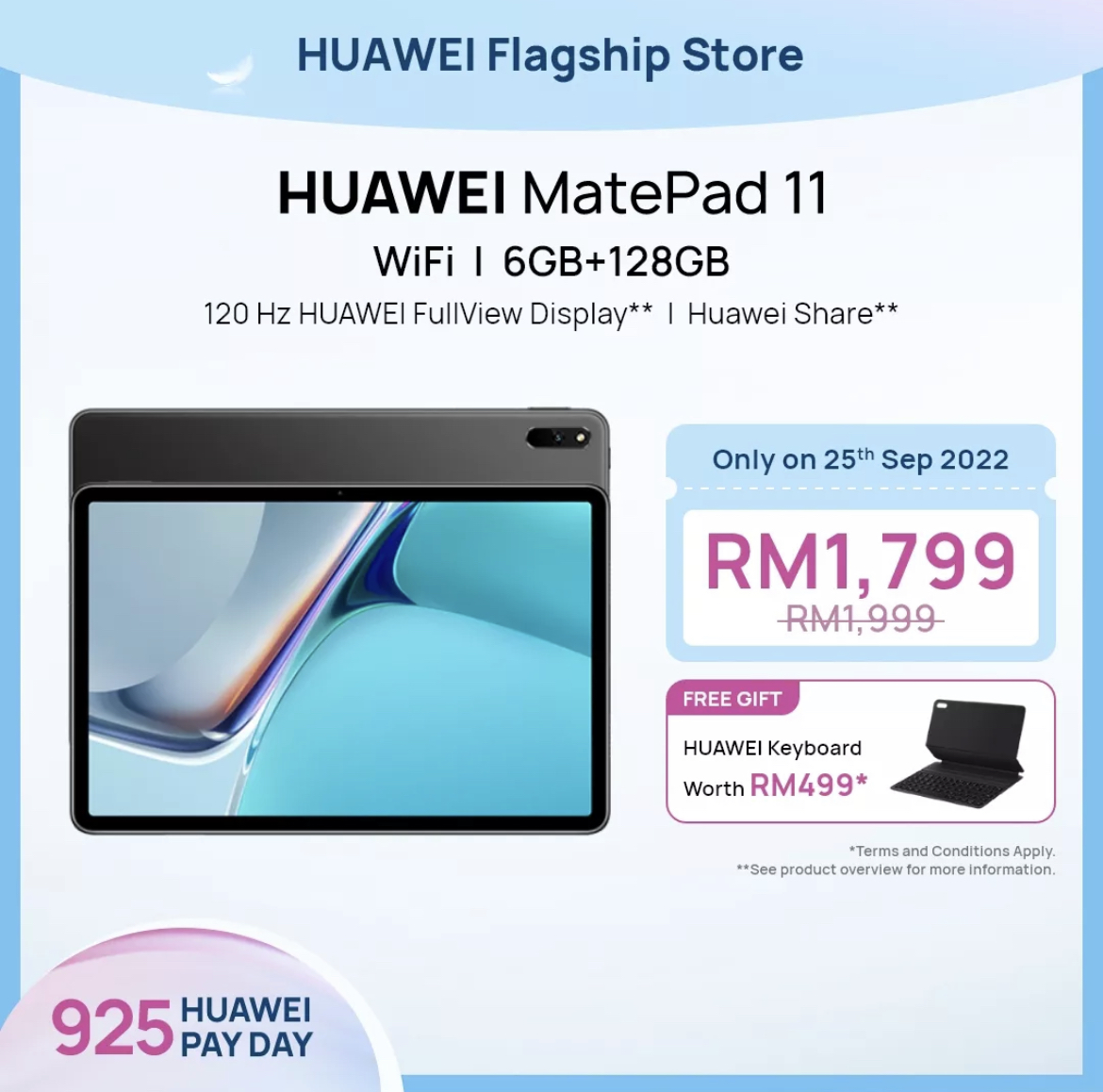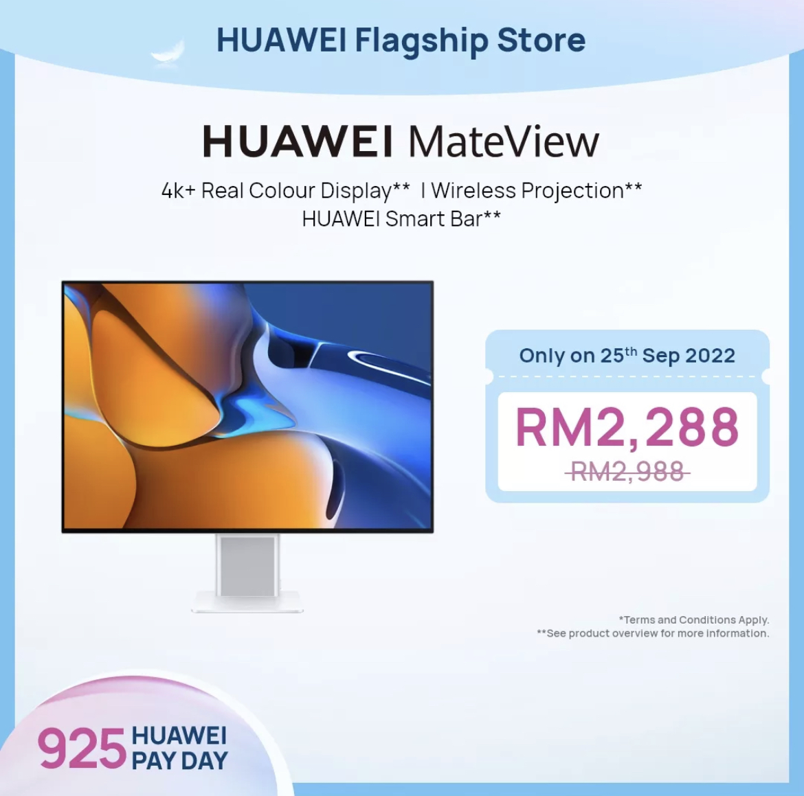 华为的粉丝们这次买起来咯~Huawei Lazada 官方店铺 将在9月25日举办 Payday 一日大促销,智能手表、手机、平板电脑、笔电等等折扣多达RM800!