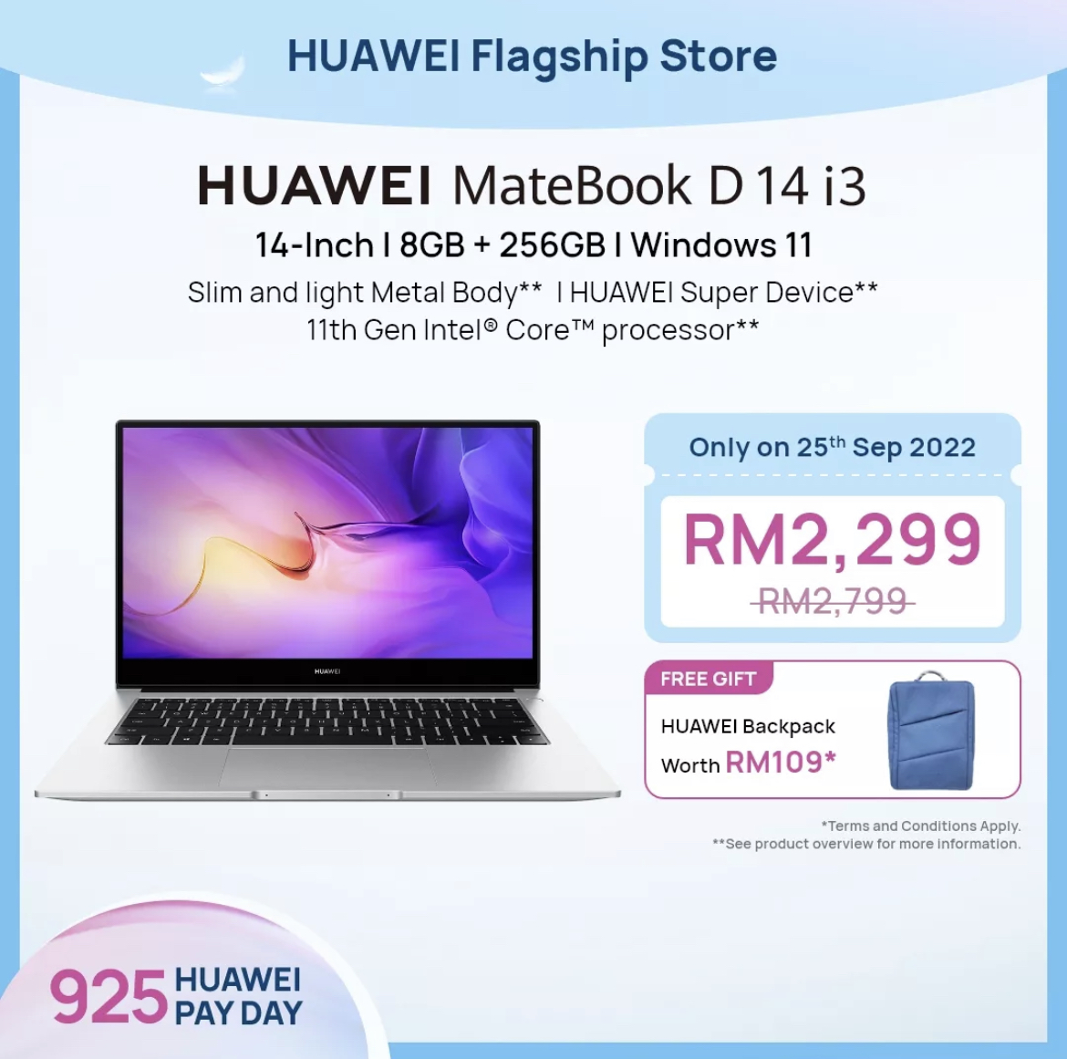 ▼ ① HUAWEI MateBook D14 Intel® Core™ 11th Gen Laptop