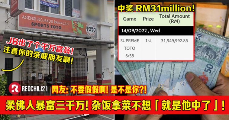 注意注意!大马柔佛州最近出了一名中彩票暴富的千万富翁,也许他就在你身边,又或者吃杂饭的时候可以发现一些蛛丝马迹!