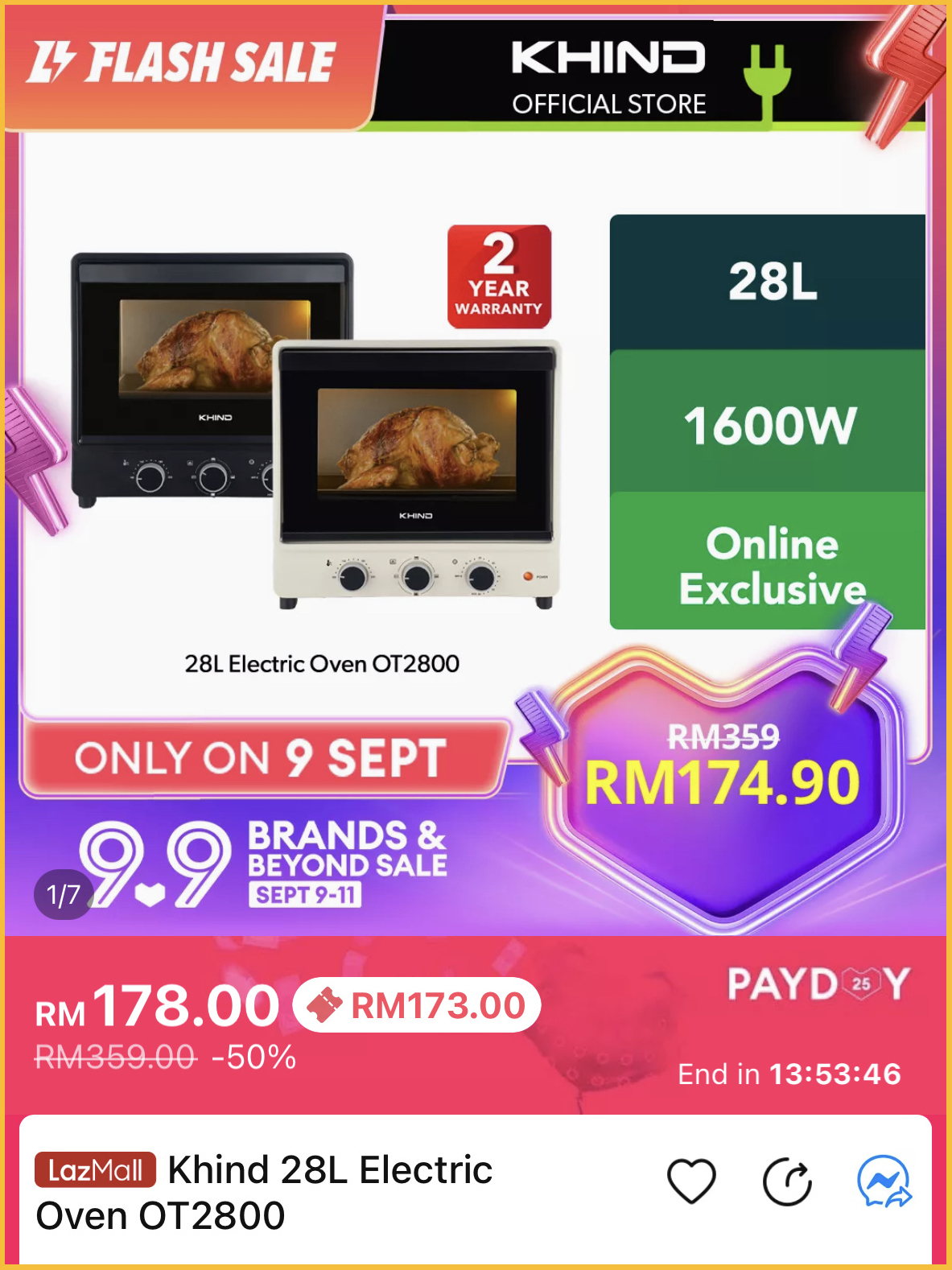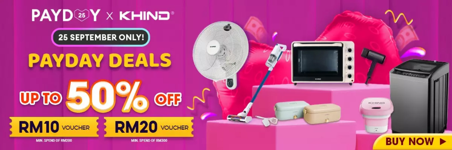 要买家电就趁今天咯~大马 Khind 官方店铺举办9月25日大促销,各款家电折扣高达50%!而且还有额外RM20折扣券呢!