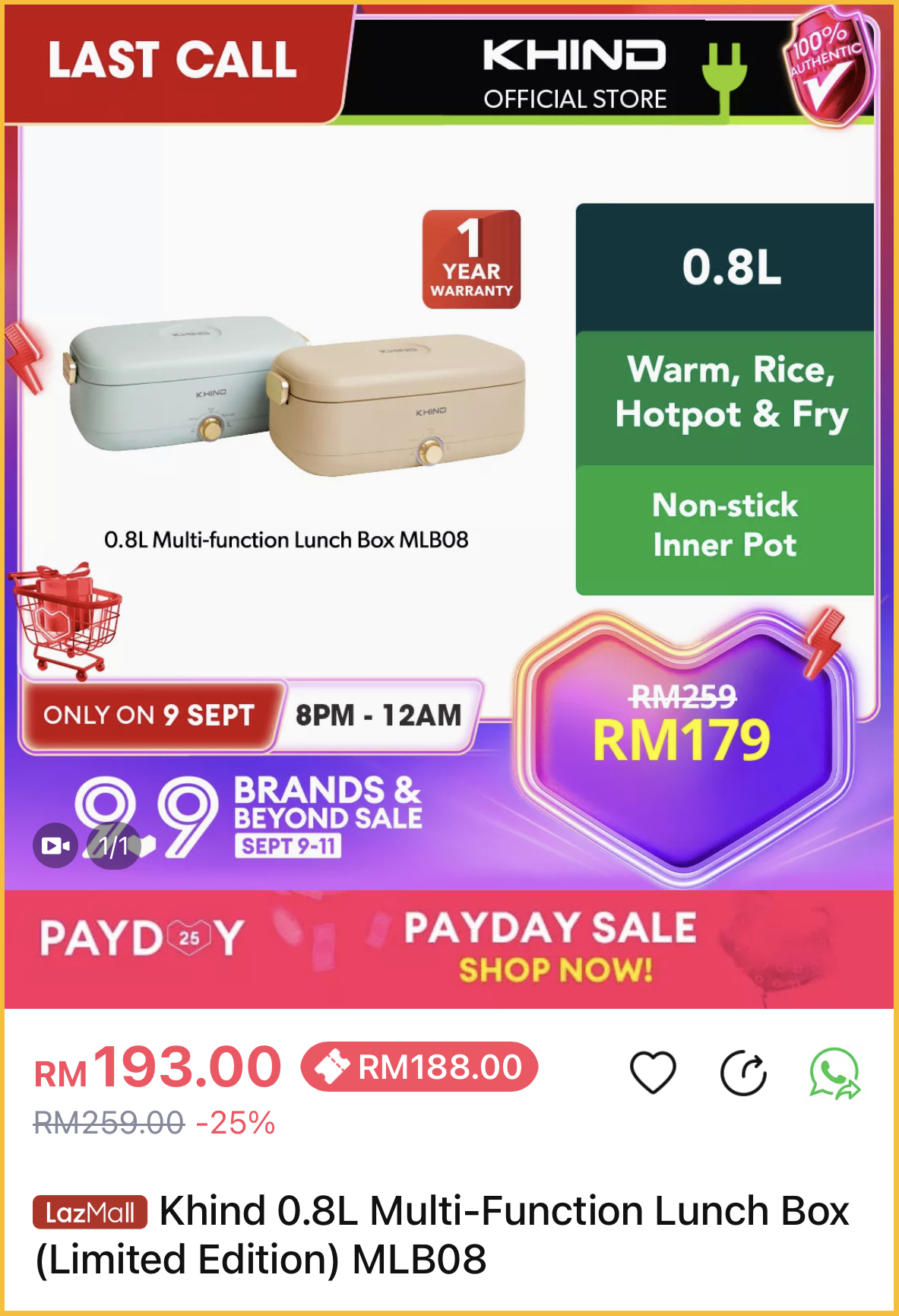 RM259.00 RM188.00 ⏩ Lazada 购买链接【点击这里】