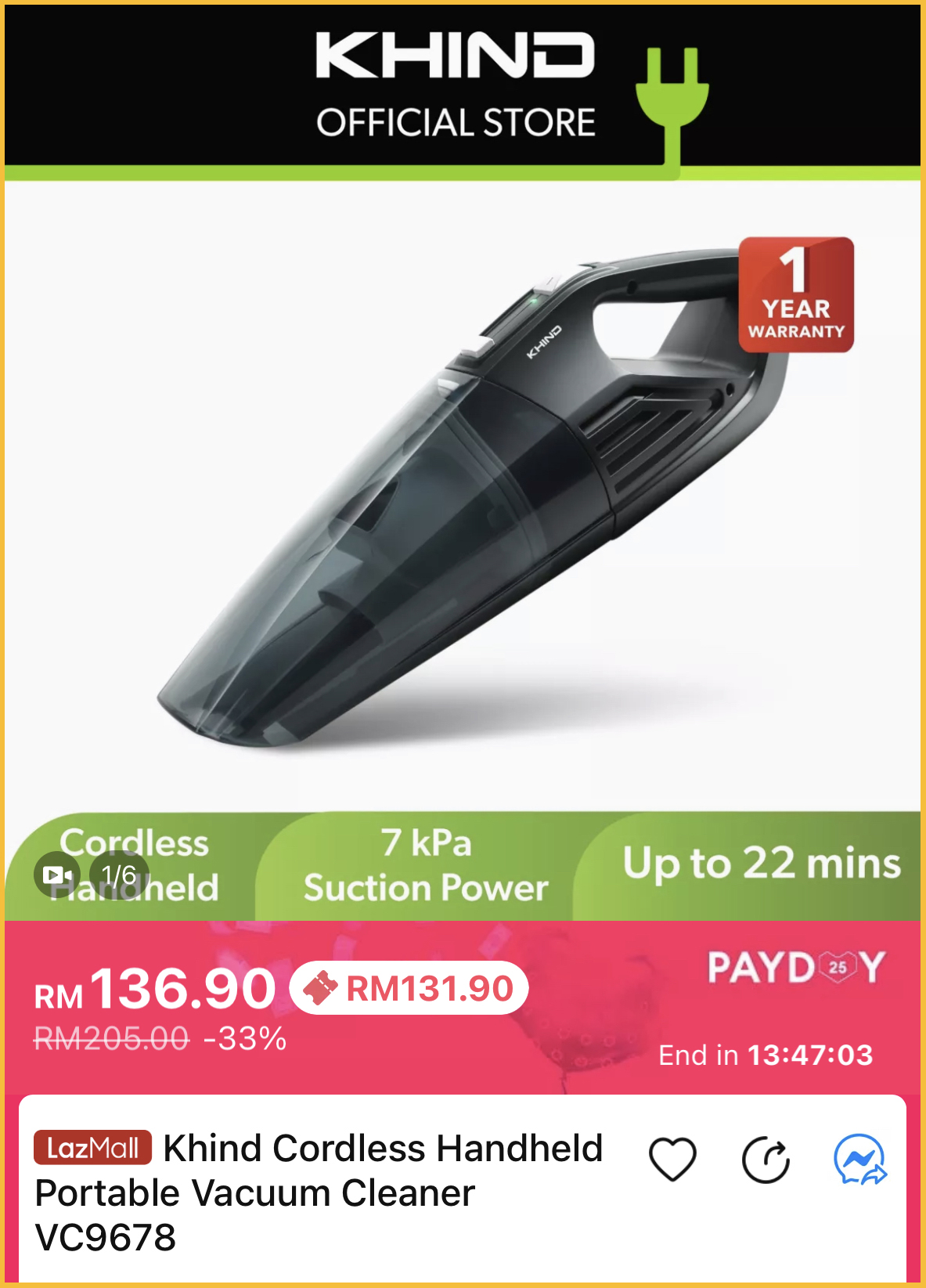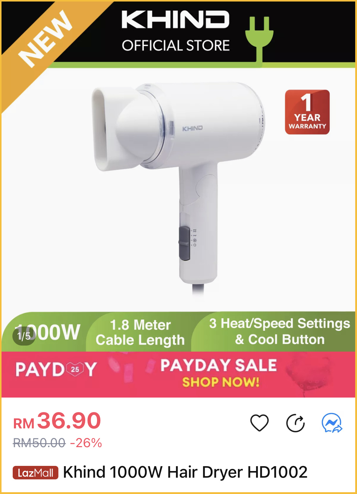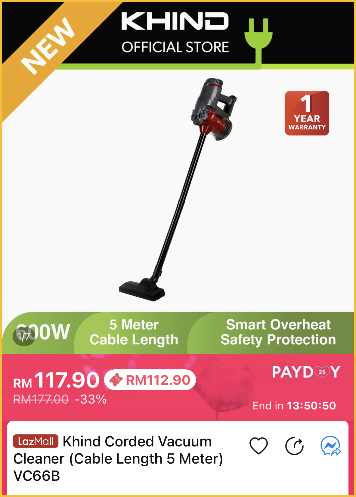 促销活动:Khind x Lazada Payday 促销 折扣高达50%
