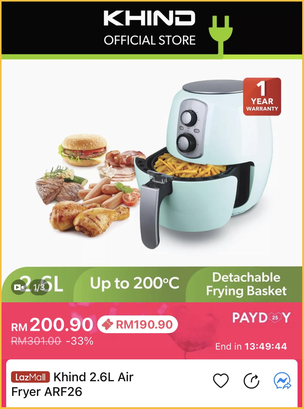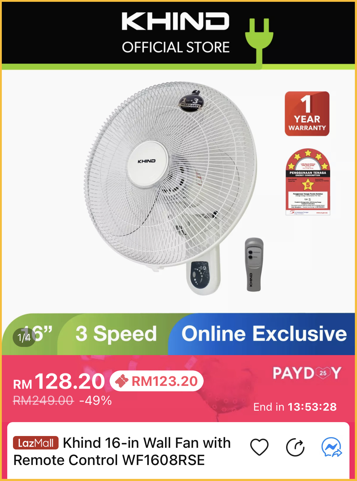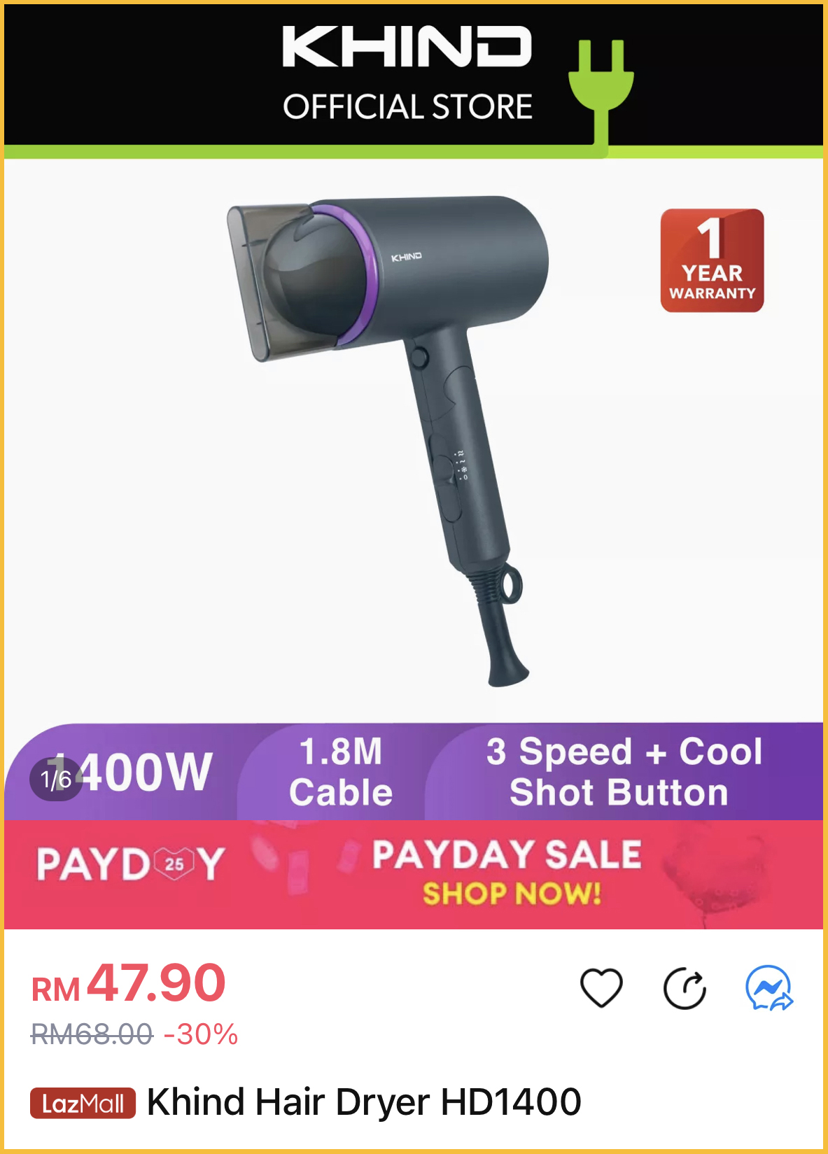 促销活动:Khind x Lazada Payday 促销 折扣高达50%