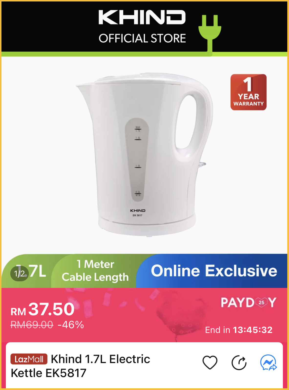 ▪ ⑩ Khind 1.7L Electric Kettle EK5817