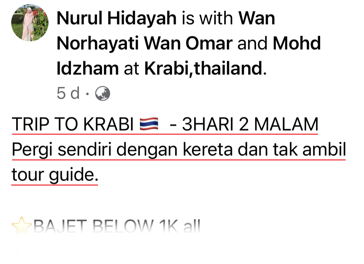 一名大马网友近日分享自己的 Krabi 自驾游行程,3天2夜全程花费一个人只需不到RM1000!