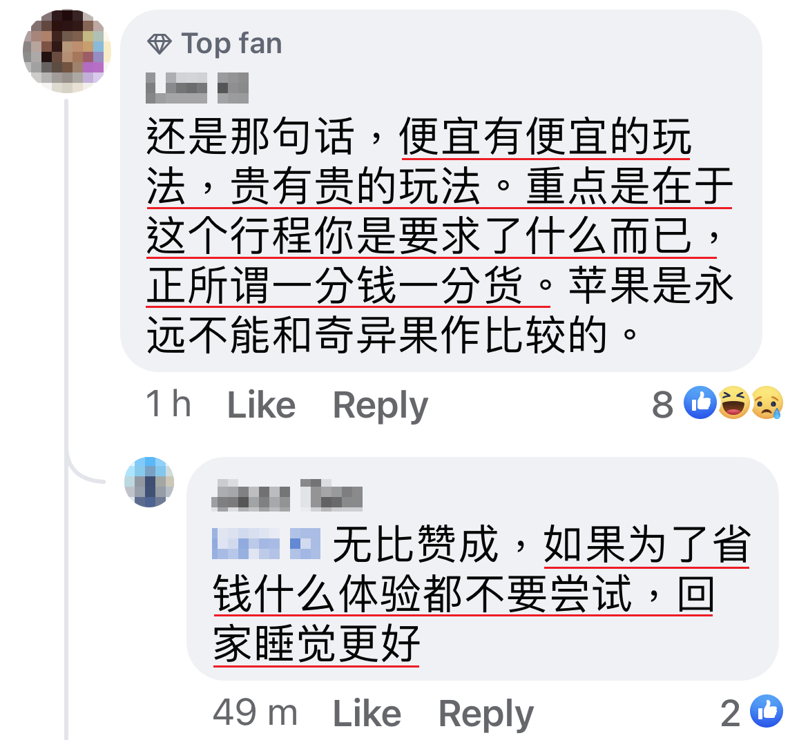 如果扣除这个旅游景点的消费RM800,全程的消费就不会超过RM1000,比搭飞机去还便宜。两人的旅程加起来只花了RM750,若加上出租船出海的费用,就是每人RM200,2人RM400,因此我和另一半的总花费是RM1,150。