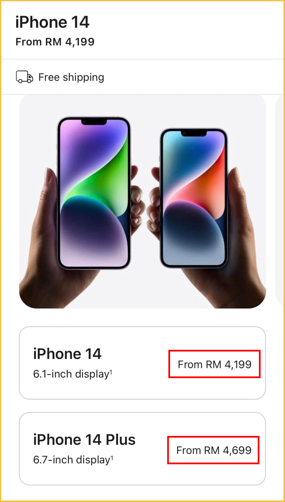 ▼ 马来西亚:iPhone 14 RM4,199起 | iPhone 14 Plus RM4,699起