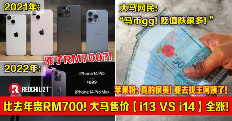 比去年贵RM700!大马售价【iPhone 13系列 VS iPhone 14系列】全涨!网友们:是马币gg跌很多!