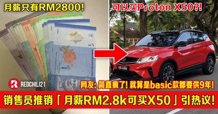 汽车销售员推销「月薪RM2800可买Proton X50」引热议!网友:简直疯了!就算是basic款都要供9年!