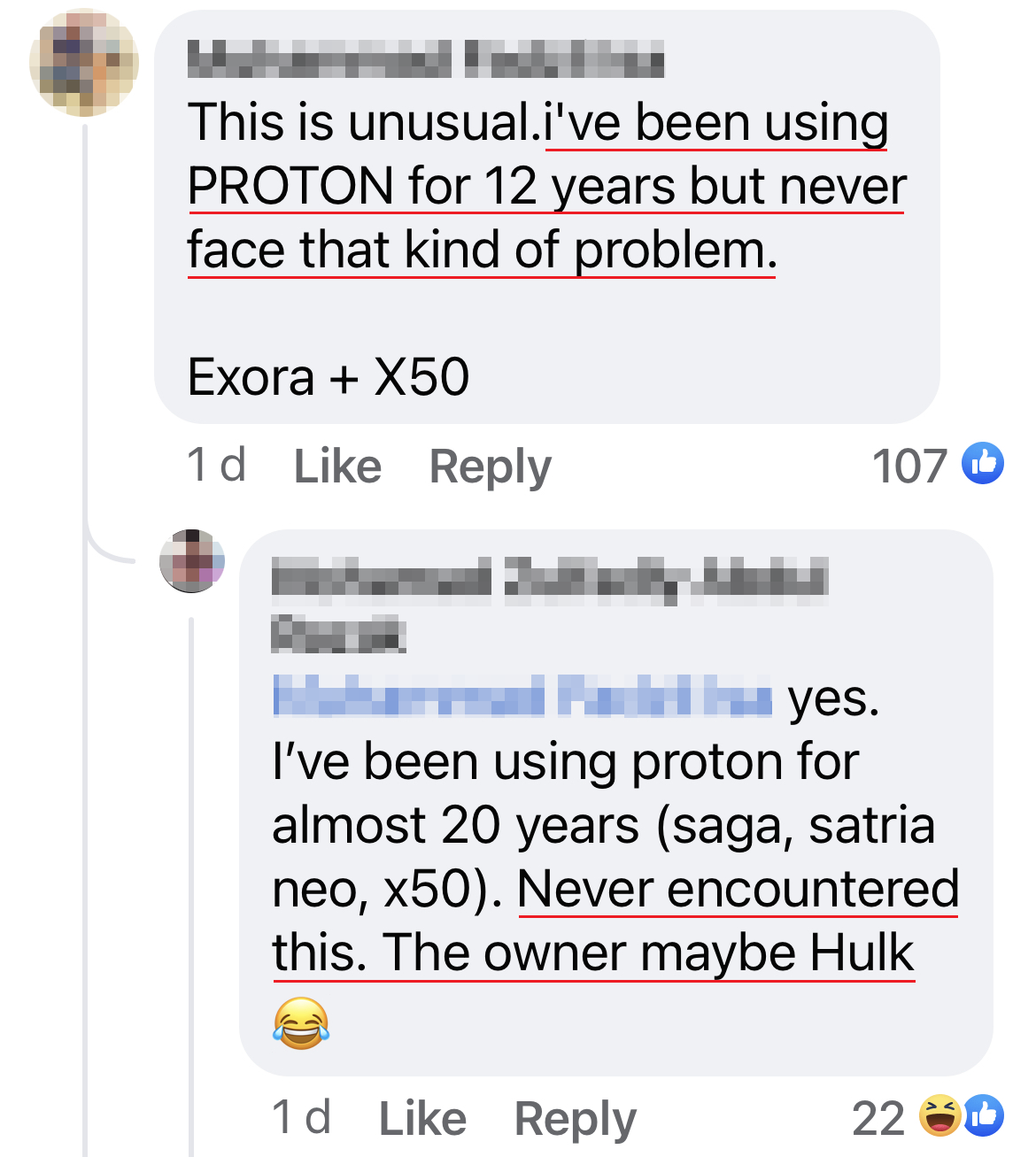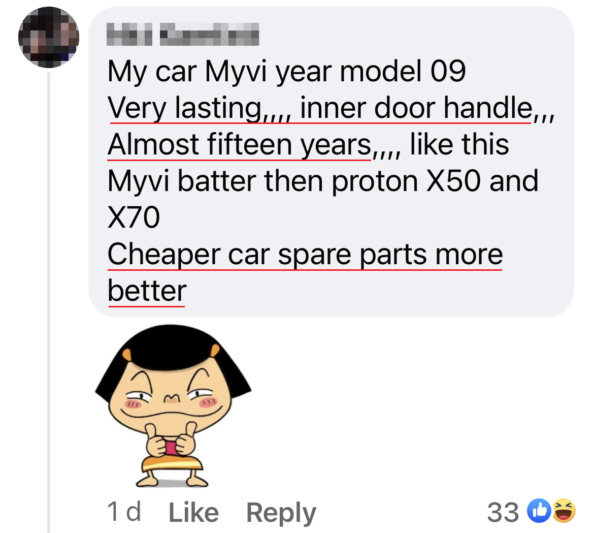 ▼ 车主们护航:开了十几年的Proton车从来没有遇到酱的问题。