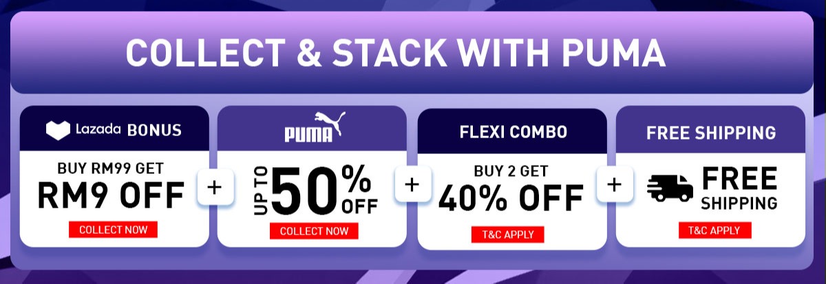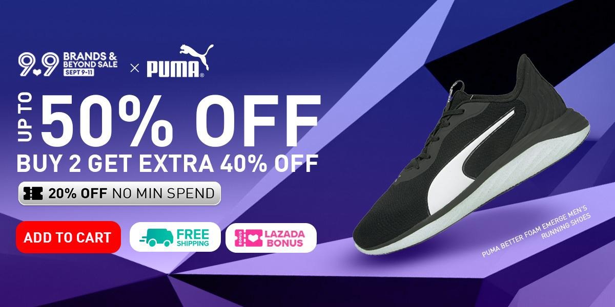 著名运动品牌 Puma 将于9月9日在 Lazada 购物平台的官方店铺推出大促销,全店折扣高达50%!购买2件商品或以上可享有40%额外折扣!