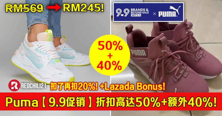 促销活动:Puma x Lazada 9.9 促销 折扣高达50% 2件以上额外40%