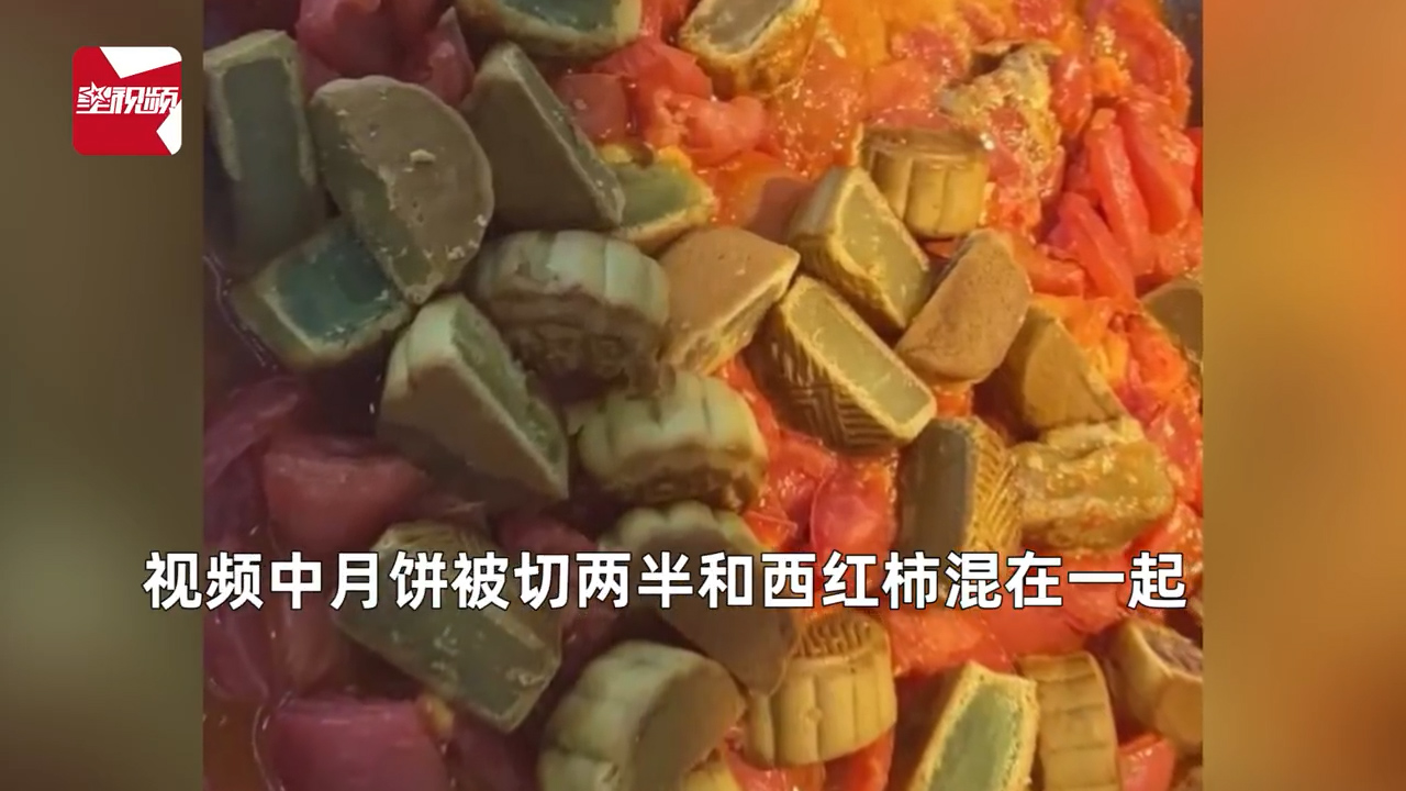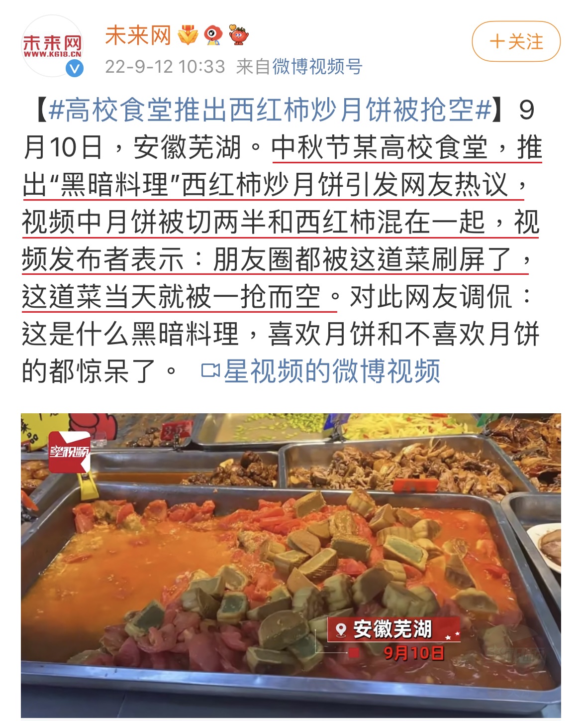 中国安徽省一所高校的食堂,用月饼炒成一道菜——番茄炒月饼一大盘直接上桌,结果当天就被一抢而空!