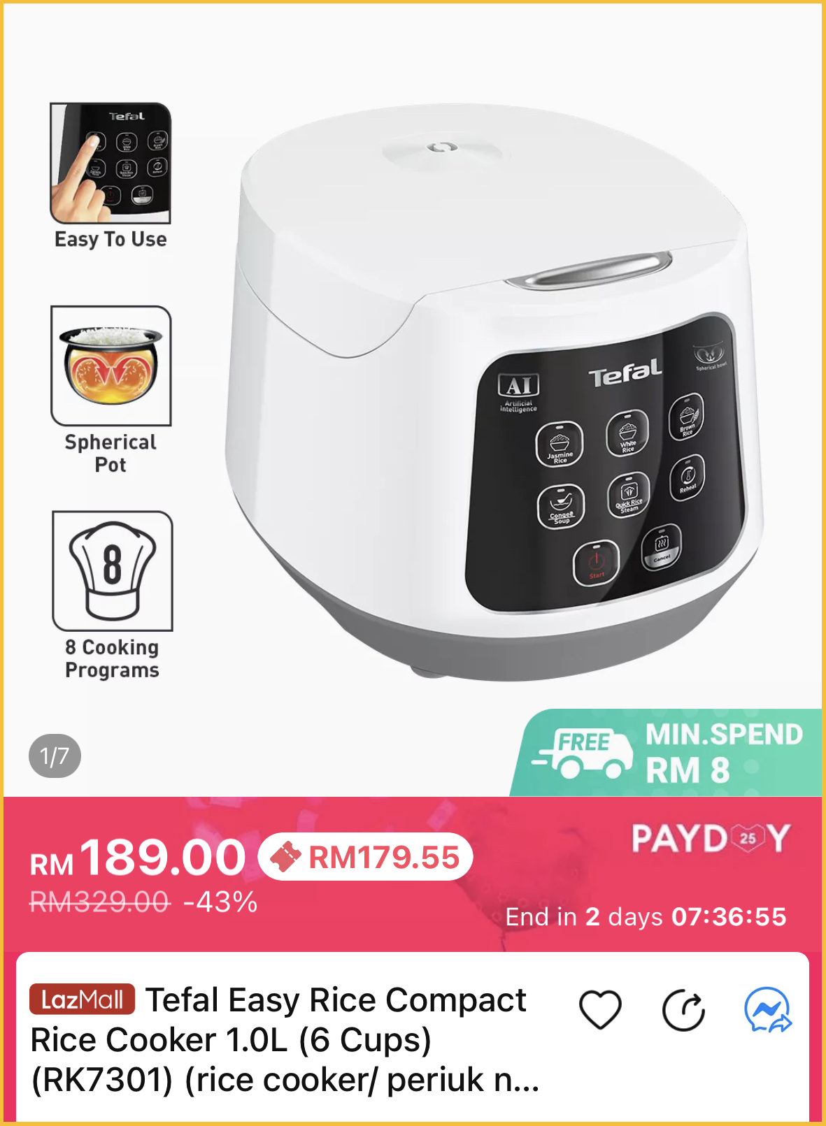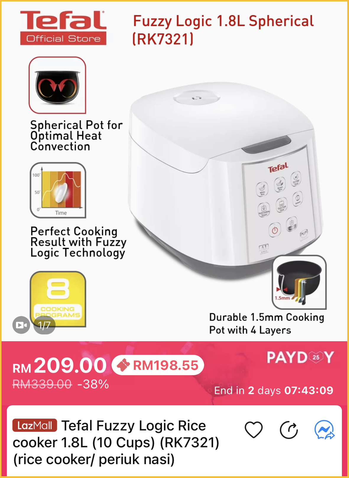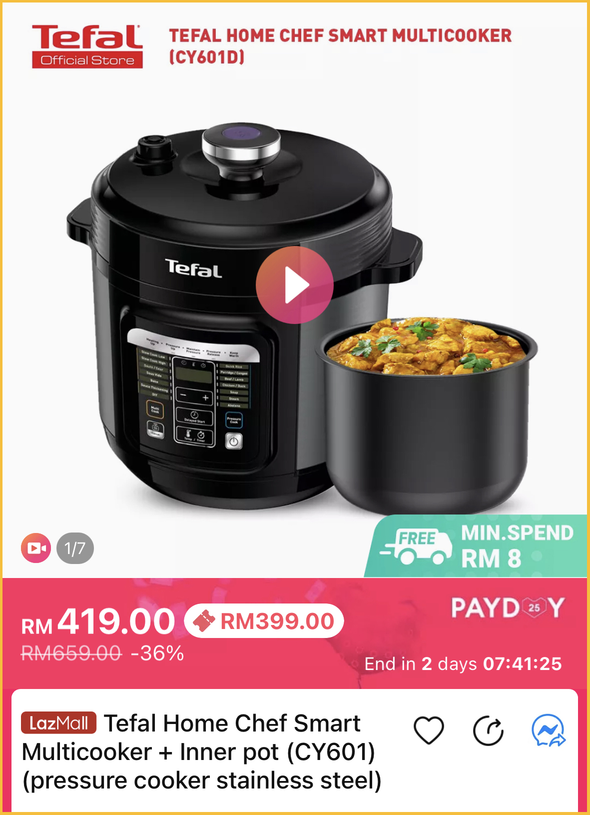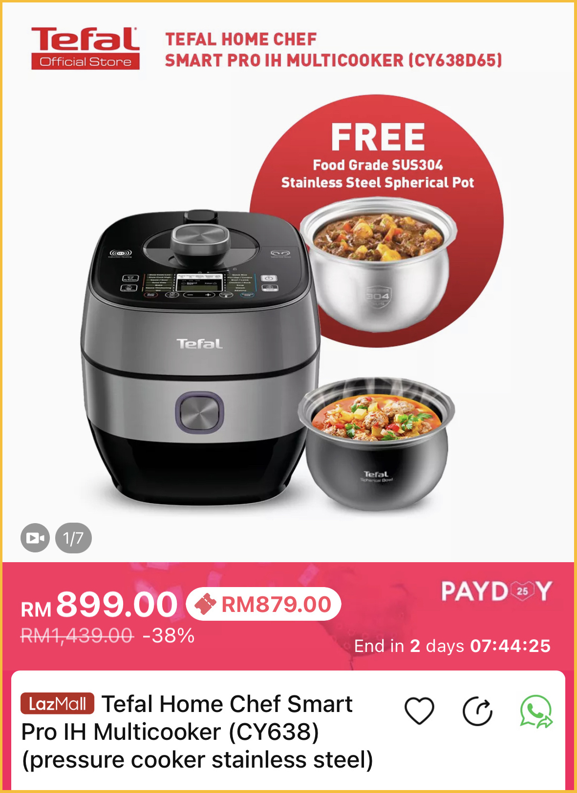 Tefal全店【925 Payday大优惠】折扣高达50%!多功能电饭锅只需RM1XX!