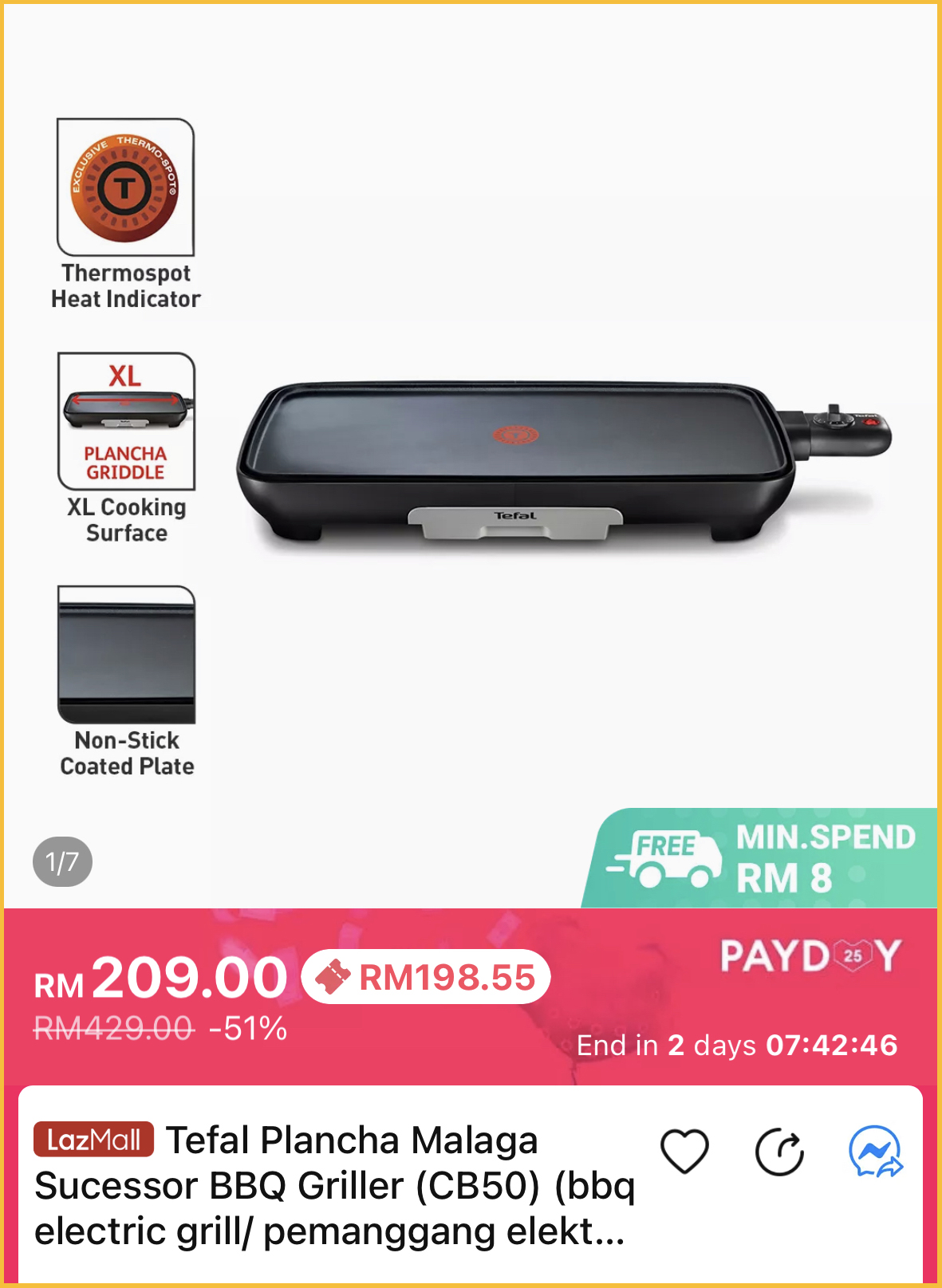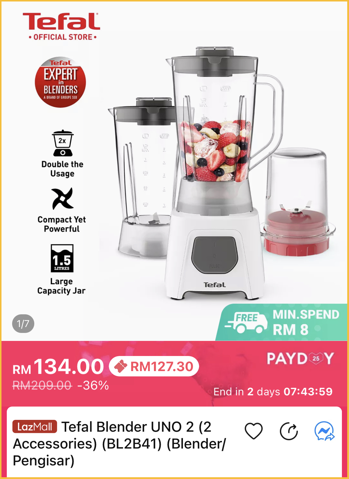 一直想要入手 Tefal 厨房家电但又迟迟等不到促销价?好消息!Tefal x Lazada 官方网店举办 Payday大促销,多款家电折扣高达50%!