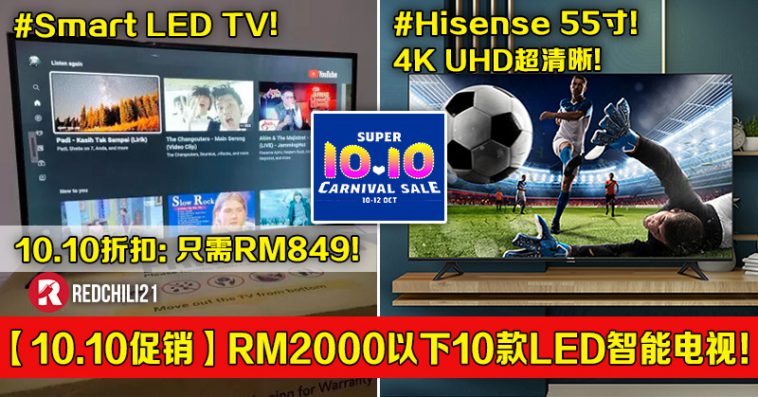 最近想买一台平价的智能电视但又不知道从何选择?以下就是在 Lazada 好评度最高的10款 LED 智能电视,统统都在RM2000以内!10月10日至12日大促销下单更便宜哦!