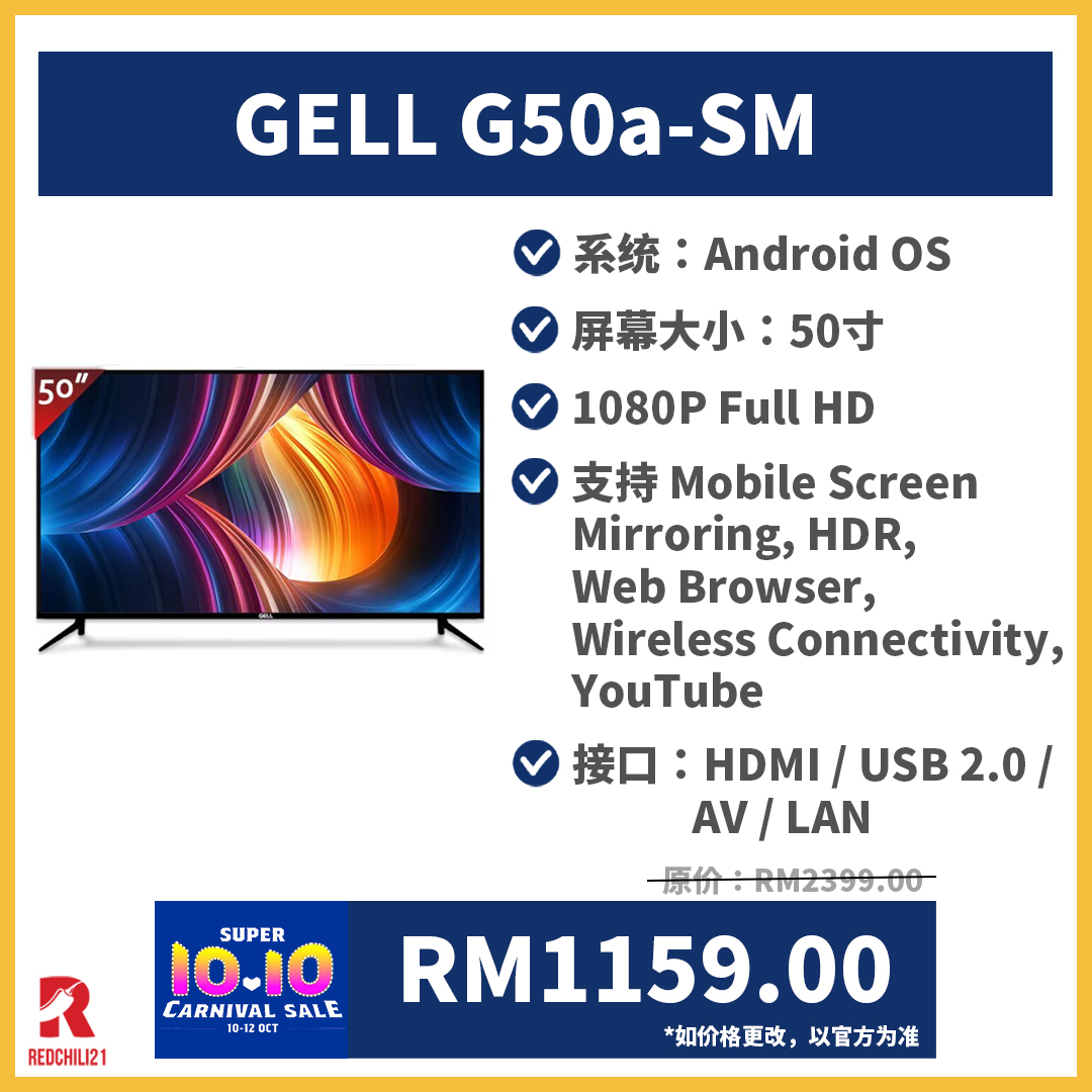 ▪ ① GELL G50a-SM Smart TV 50 inch 安卓电视
