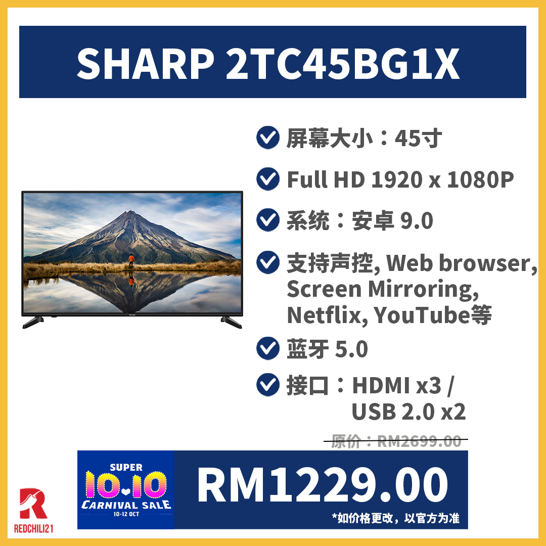 ▪ ⑩ Sharp 2TC45BG1X AQUOS 45 Inch 安卓电视