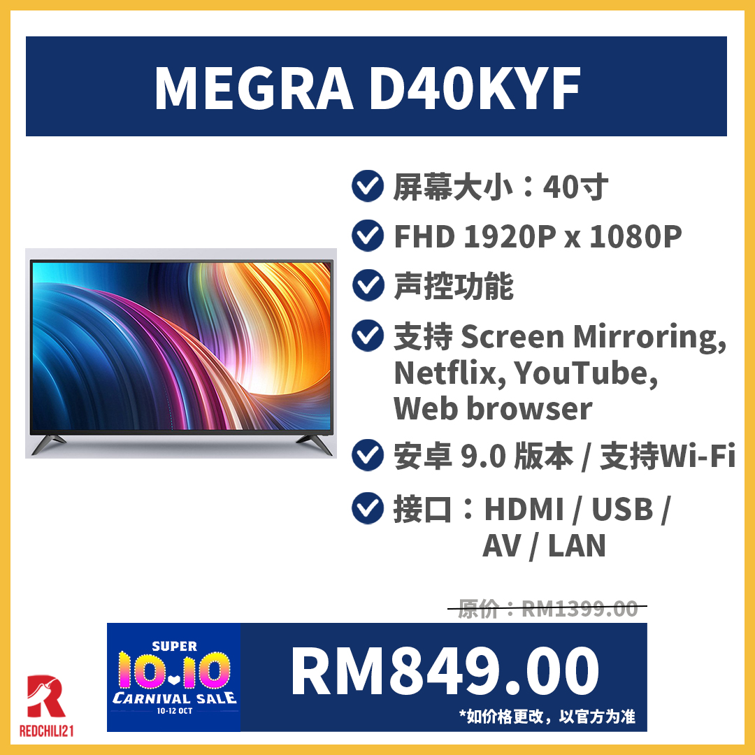 ▪ ② MEGRA D40KYF Full HD LED 智能电视