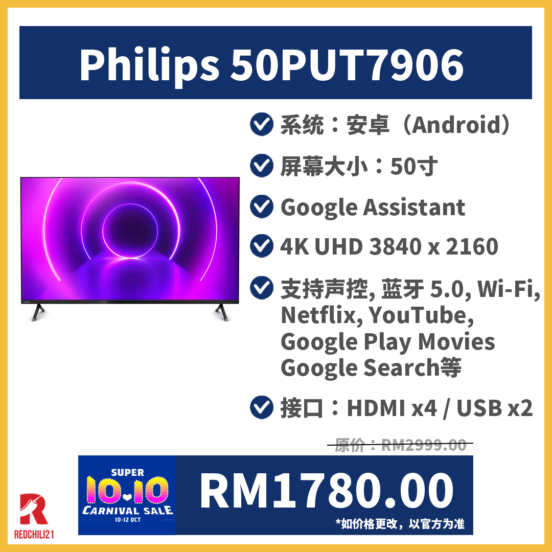 ▪ ④ Philips 50PUT7906 50 Inch 4K UHD Android TV 安卓电视