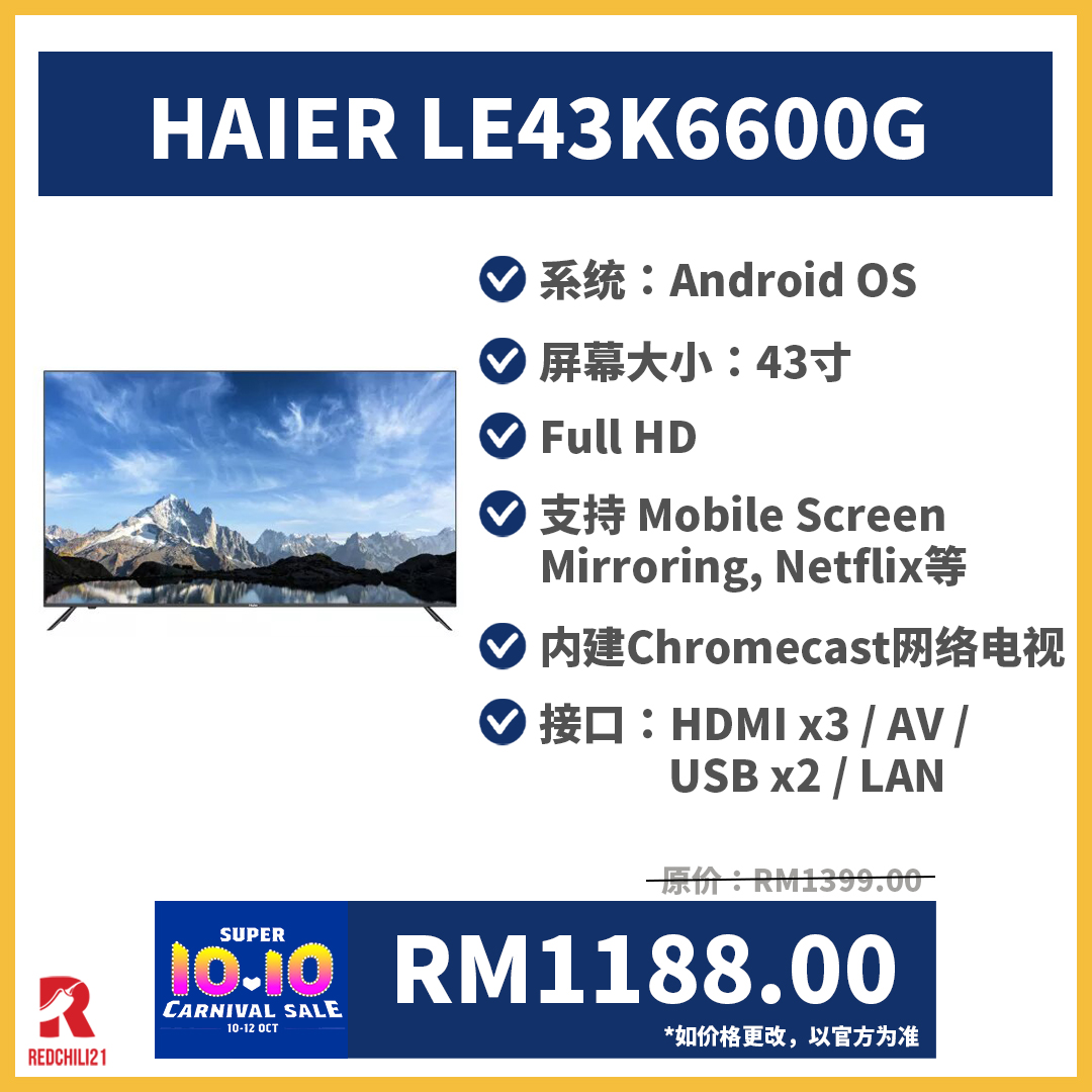 ▪ ⑦ Haier LE43K6600G 43” inch 安卓智能电视