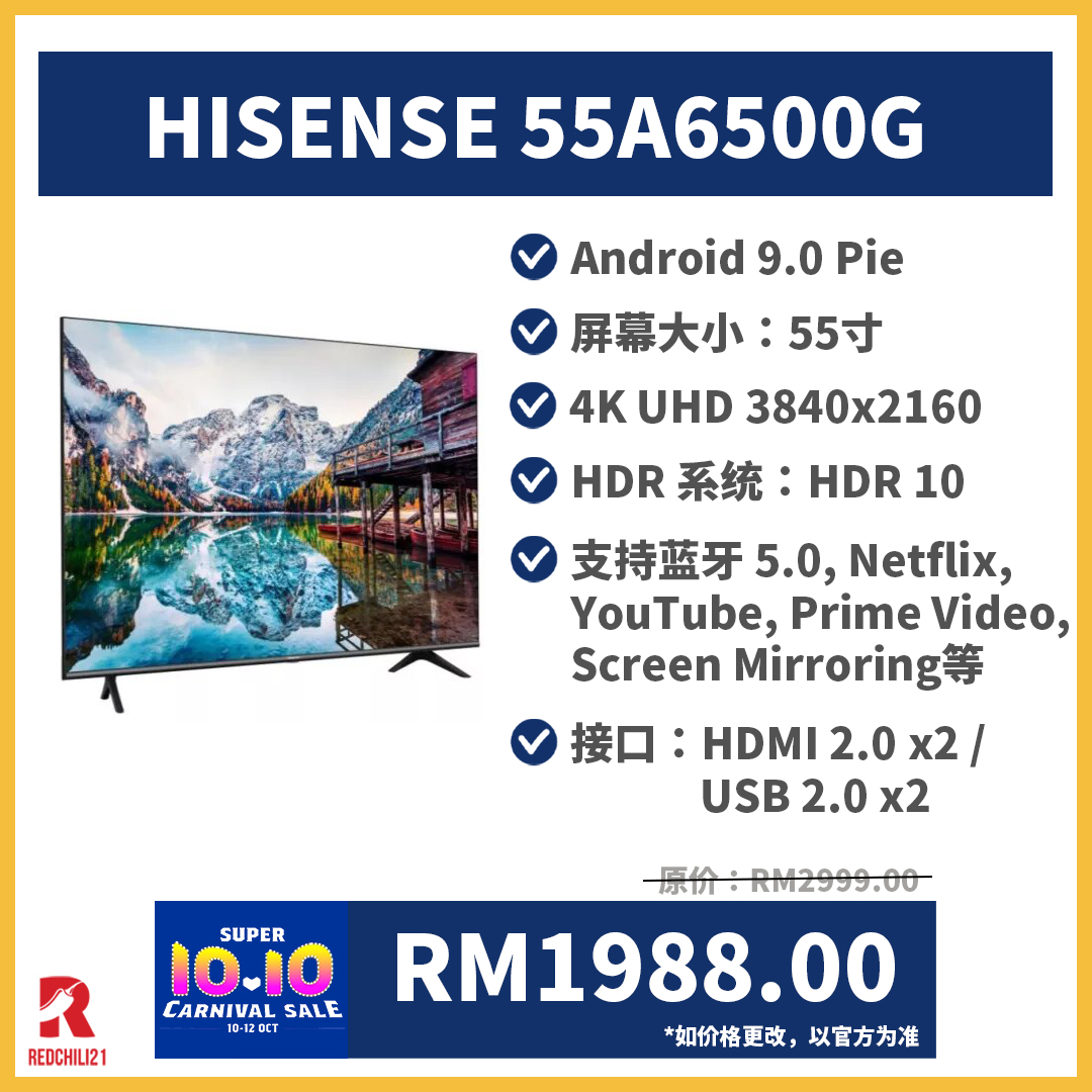 ▪ ⑨ Hisense 55A6500G 4K Android UHD TV 智能电视