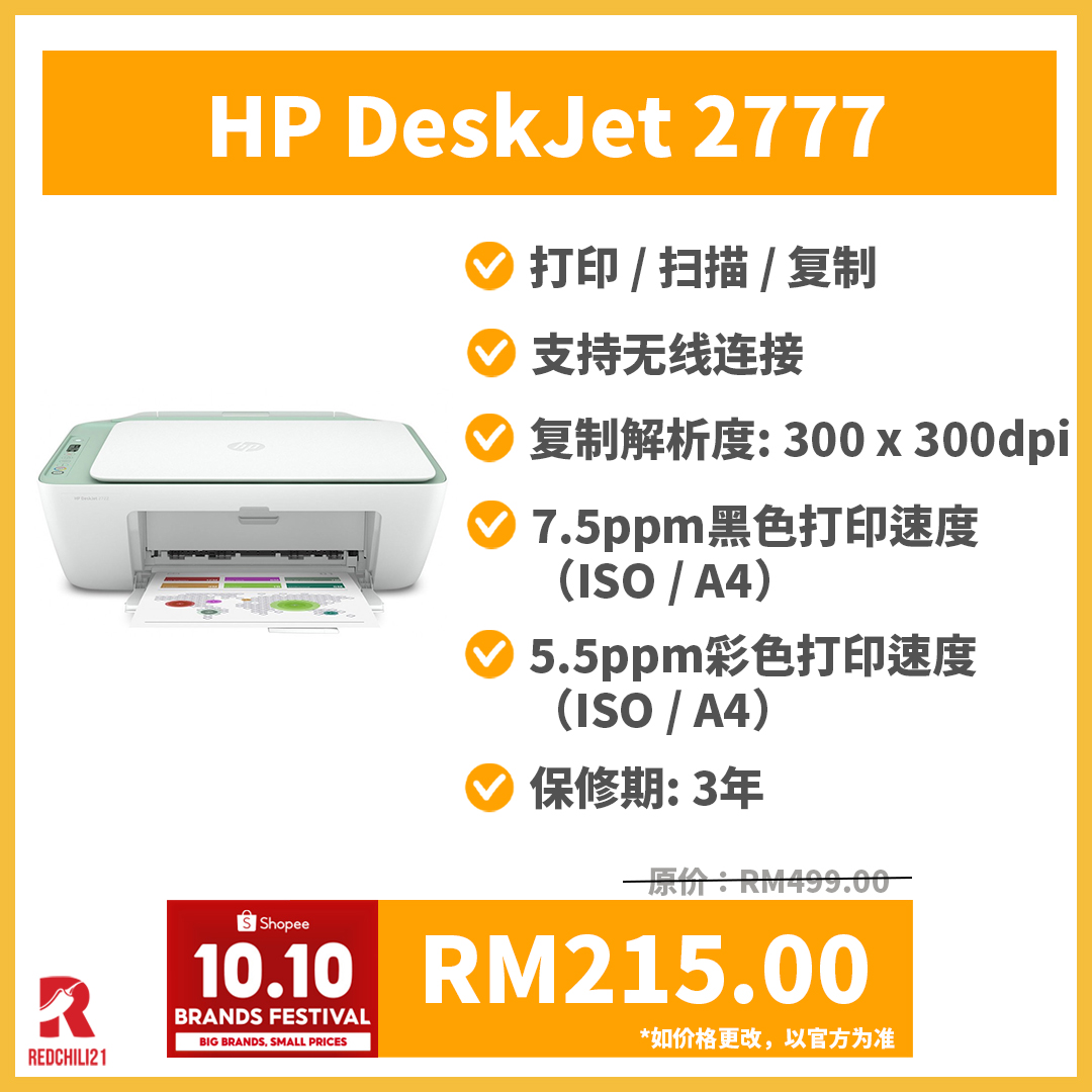 ▪ ① HP Printer 2777 (7FR25B) DeskJet Ink 打印机