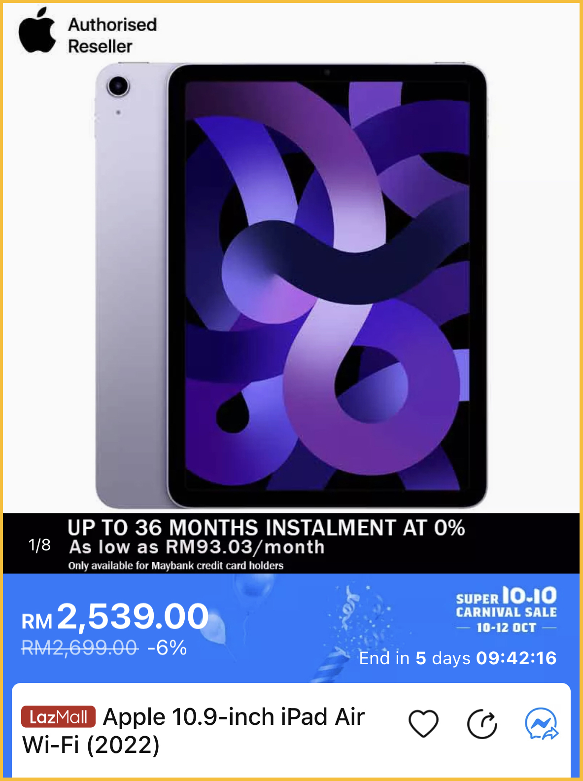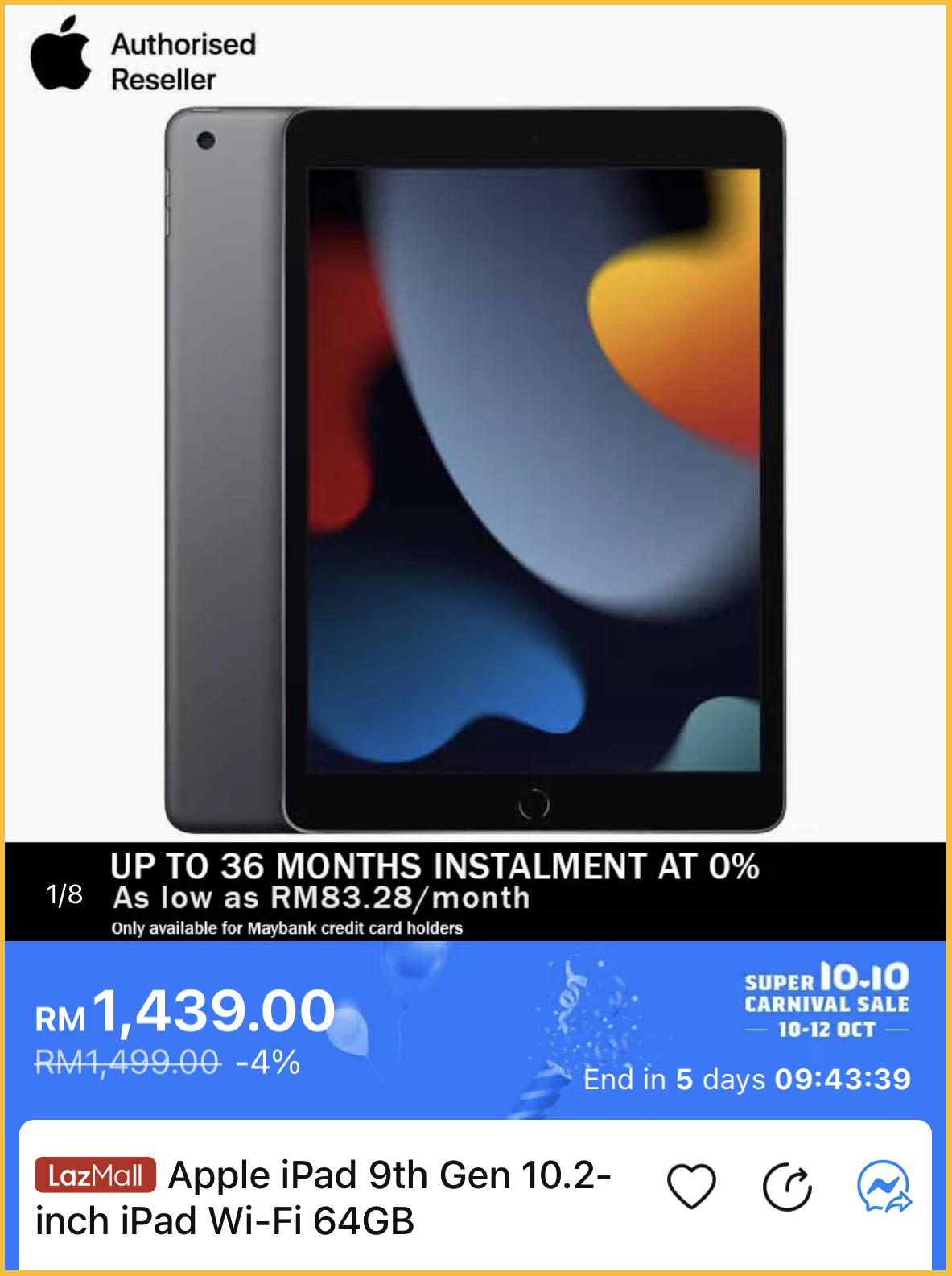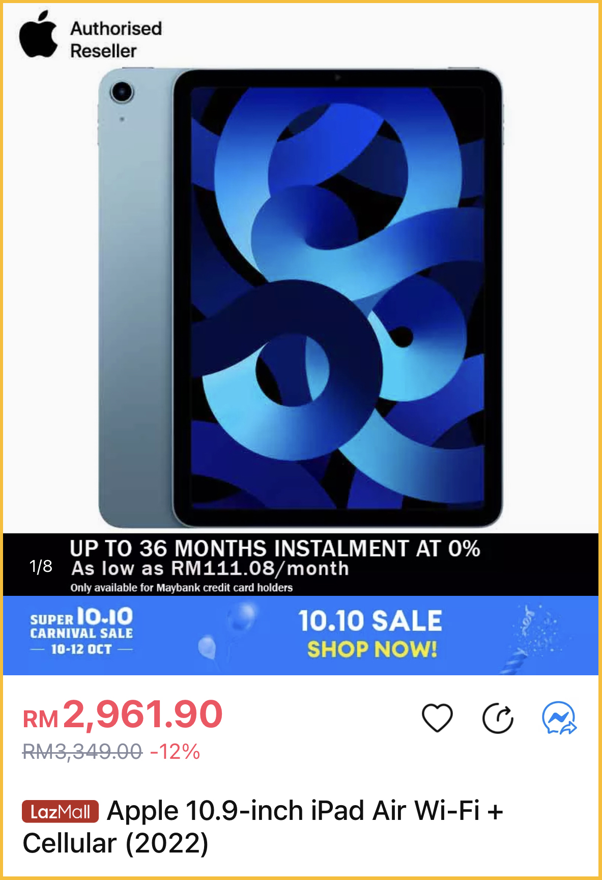 舍不得以原价购买全新的 Apple 产品?那这次的10.10购物节就是最好的时机啦~即日起,Apple x Lazada 授权经销商举办双十大优惠,尤其多款 iPad 都有折扣哦!
