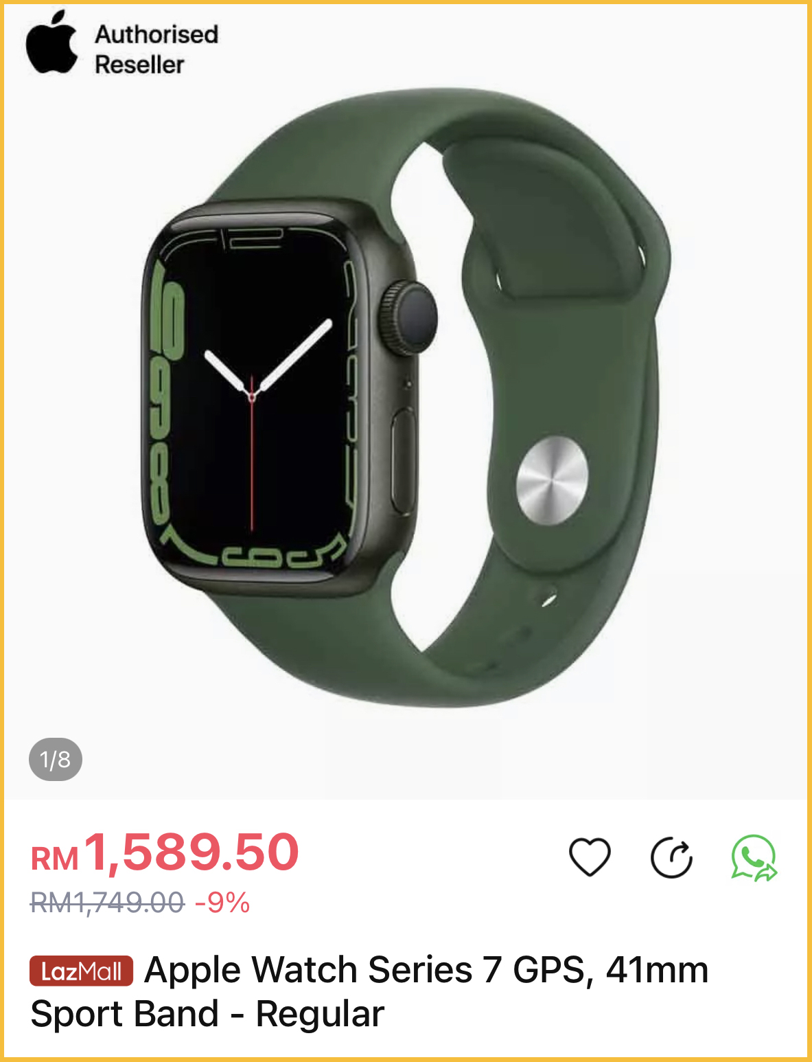 ▼ ⑨ Apple Watch Series 7 GPS, 41mm Sport Band – Regular