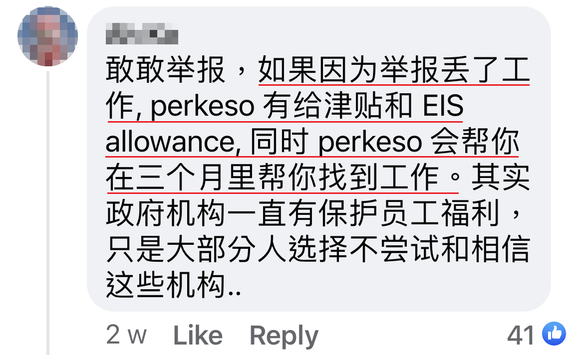 ▼ 如果因为举报而遭解雇,可以申请津贴。