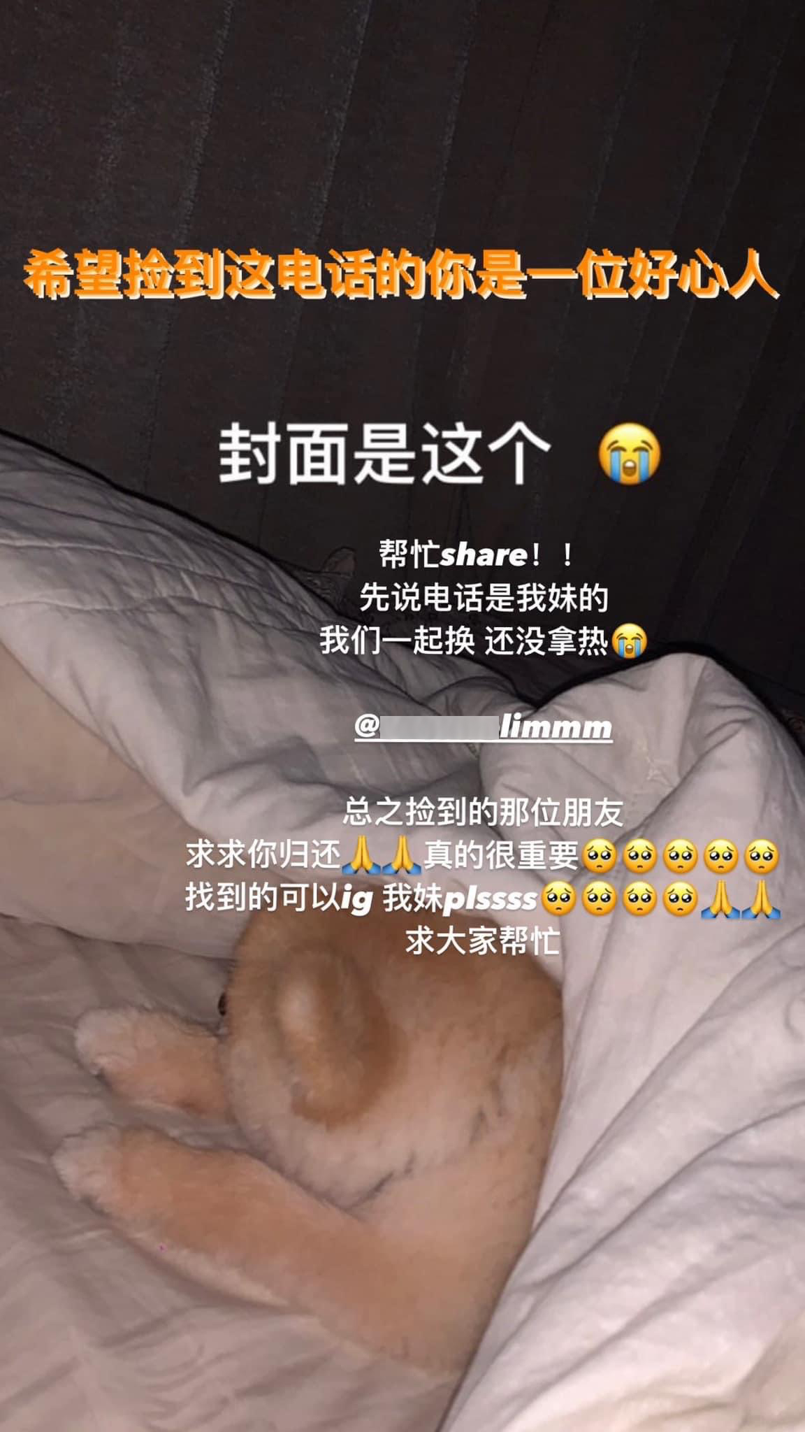 姐姐PO文请脸书网友帮忙分享出去,希望能找回妹妹刚入手不到1天的新手机。