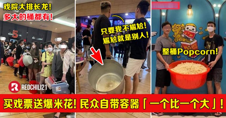 据网上帖文透露,民众只需携带干净的容器(不限大小,只要带的进来),购买电影票以后就可以排队领取免费爆米花。