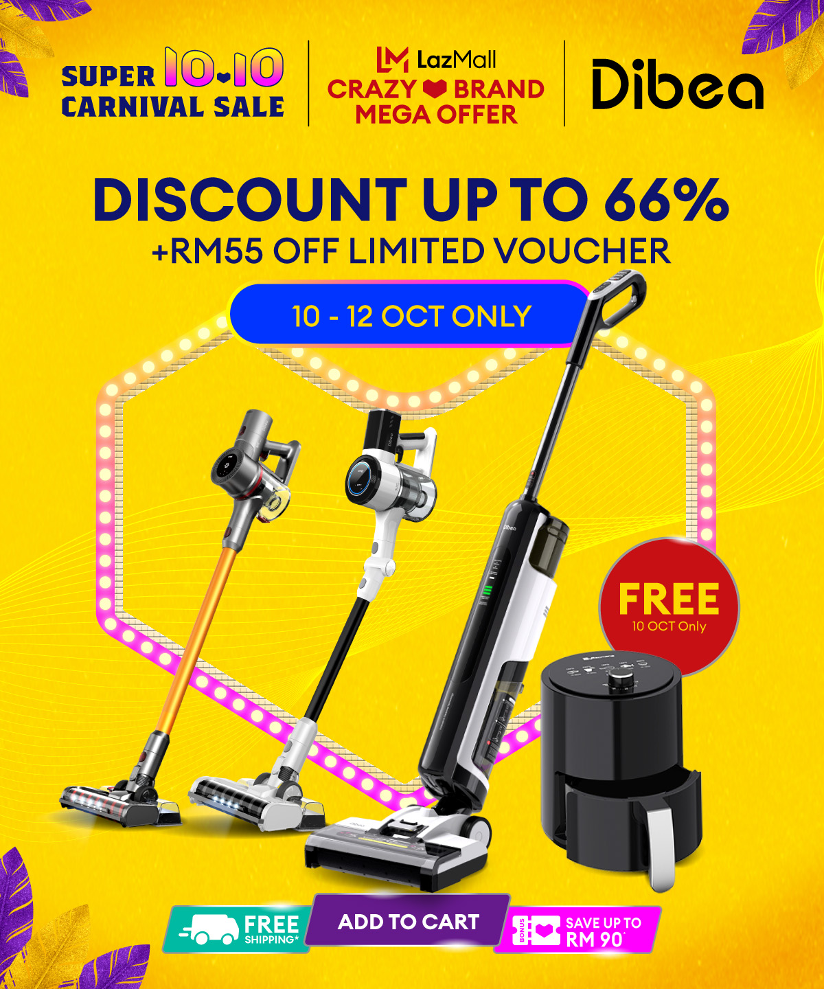 这次10.10购物节买什么最值得?当然是家电啦~Dibea x LazMall 双十连3天超级品牌大促销,折扣高达66%再加上RM55折扣优惠券,还有Lazada Bonus再扣!
