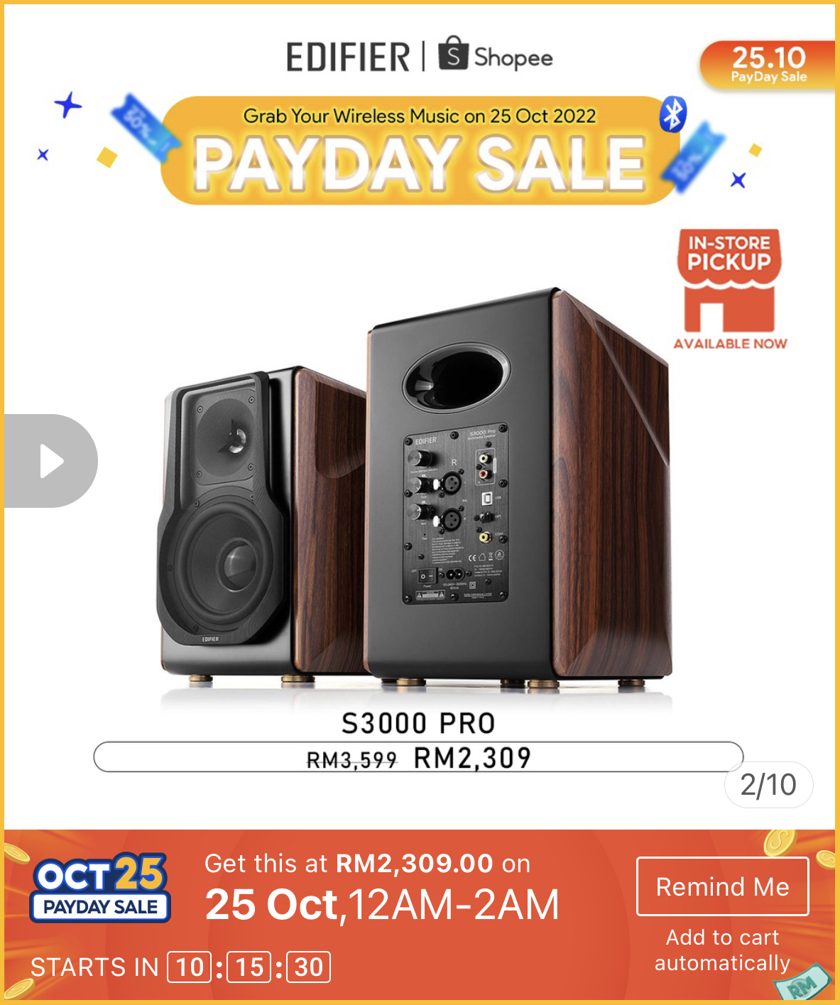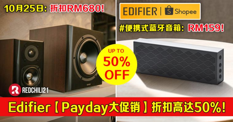 10月25日就是最好的抢购时机!Edifier 官方网店举办 Payday 一日特价促销,折扣高达50%!