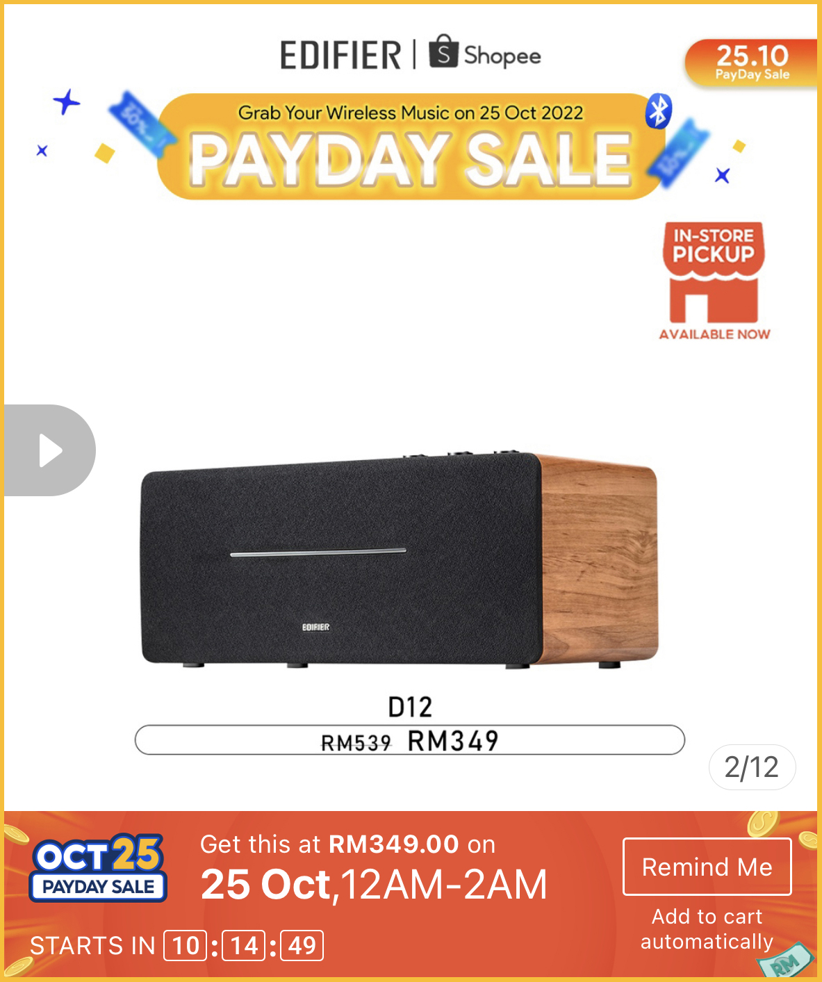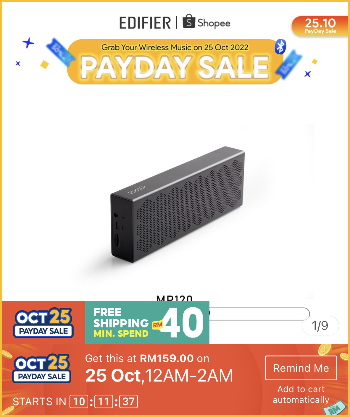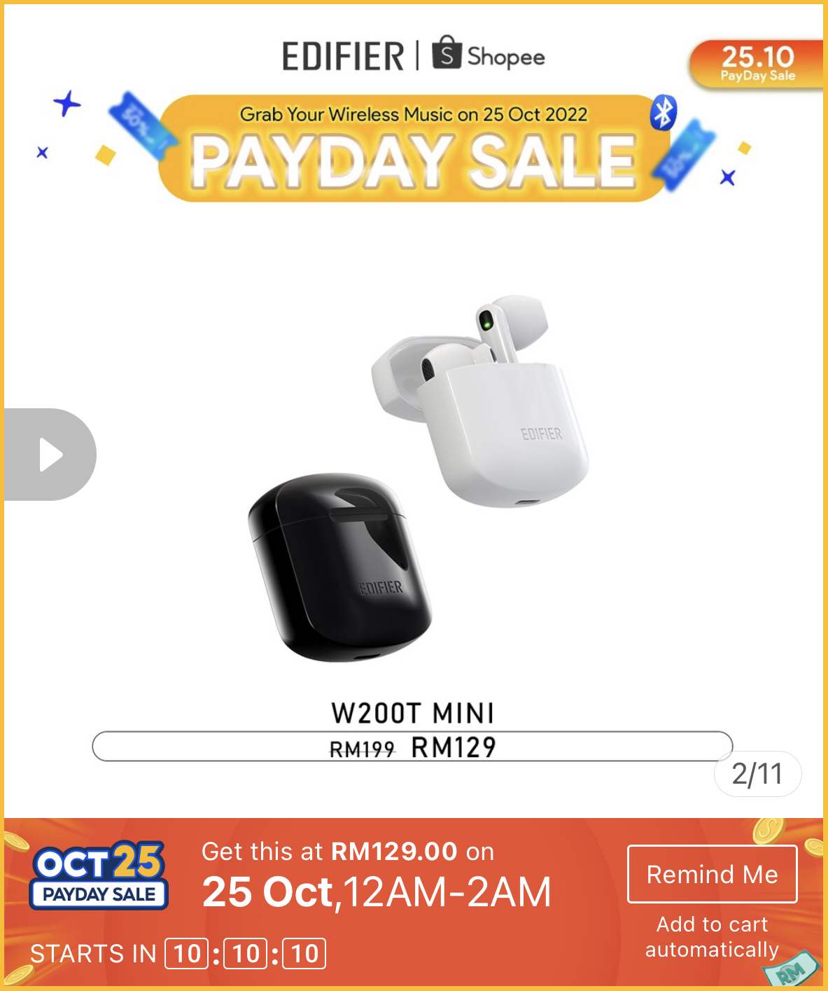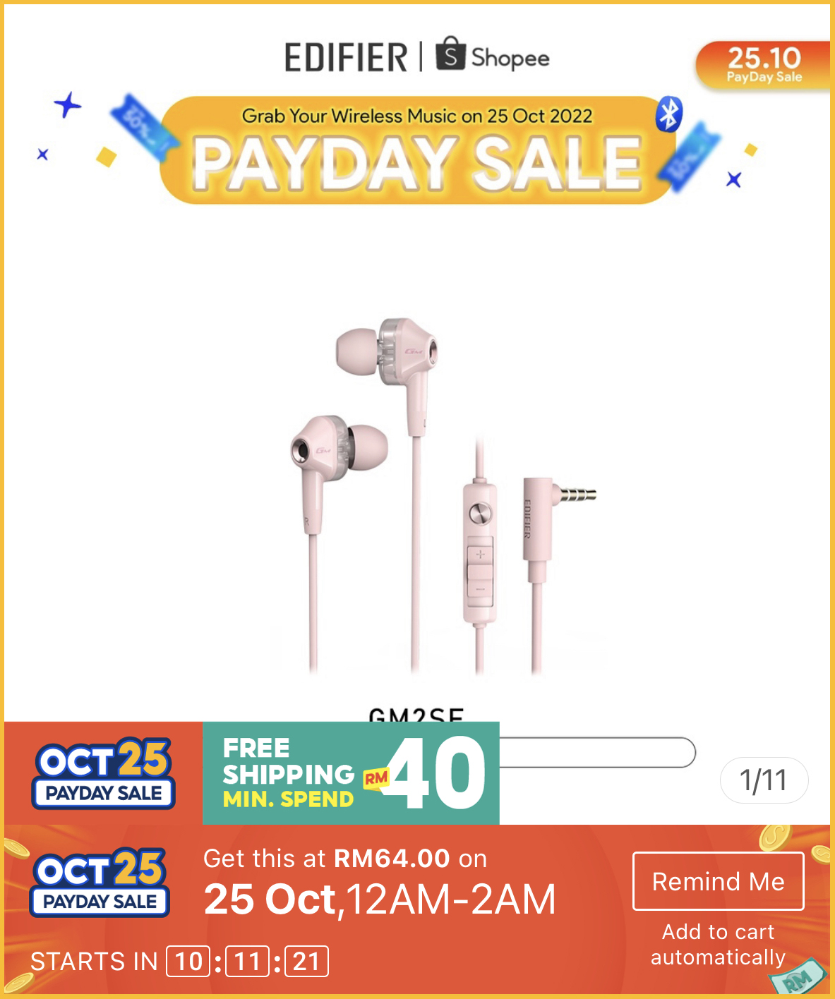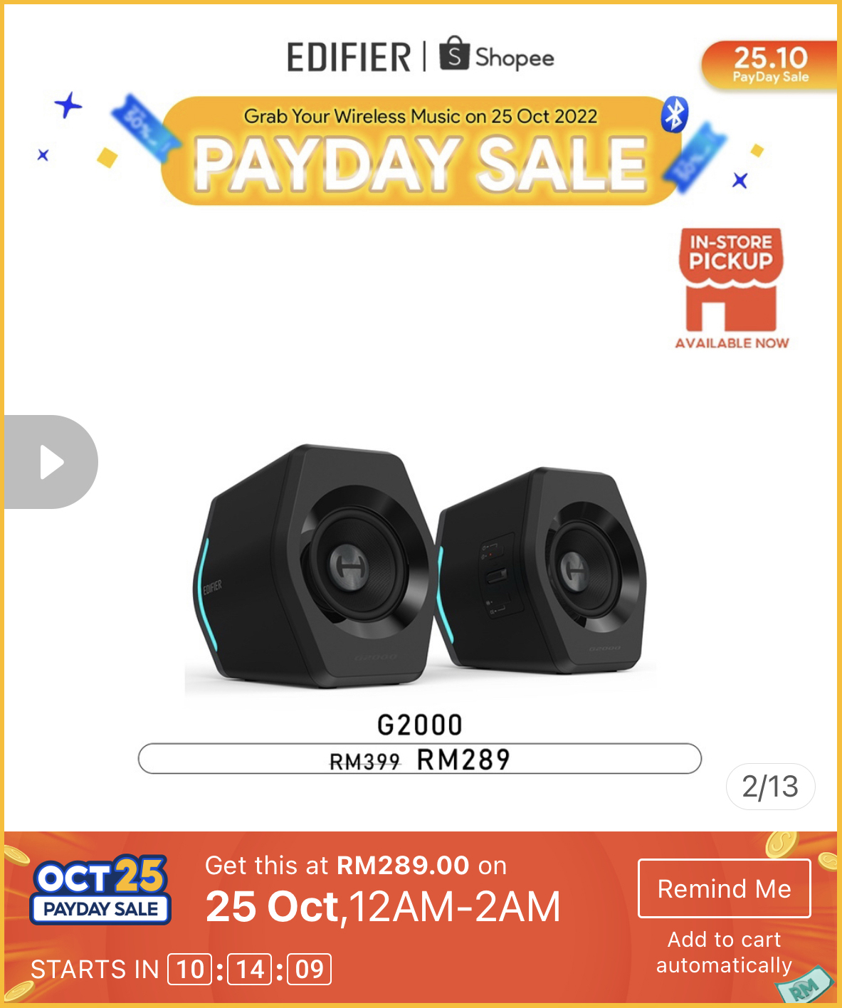 促销活动:Edifier x Shopee Payday 大促销 折扣高达50%