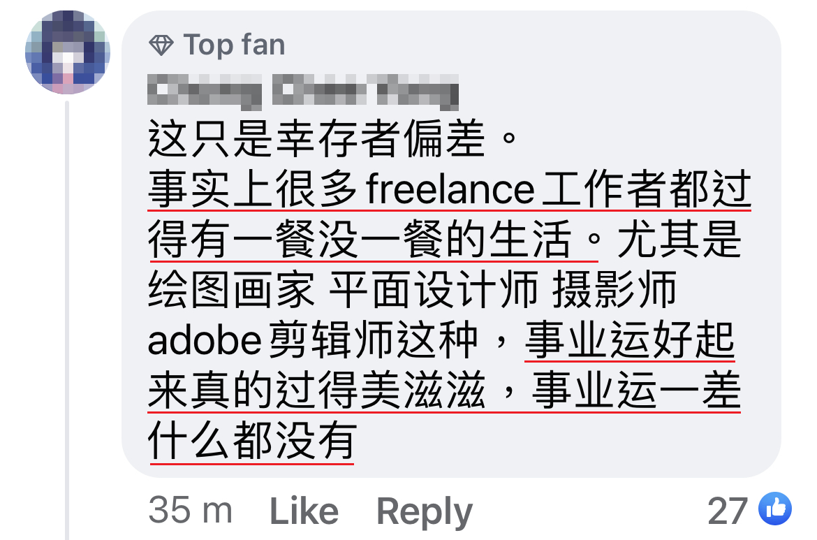 在我看来,这份工作是利大于弊,因为我可以存到钱。其实自由职业仍有很多发展的机会,就取决于你选择的是哪些管道。