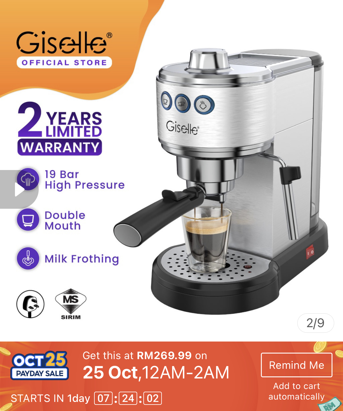 ▪ ⑨ Giselle KEA0333 Espresso Coffee Maker Machine