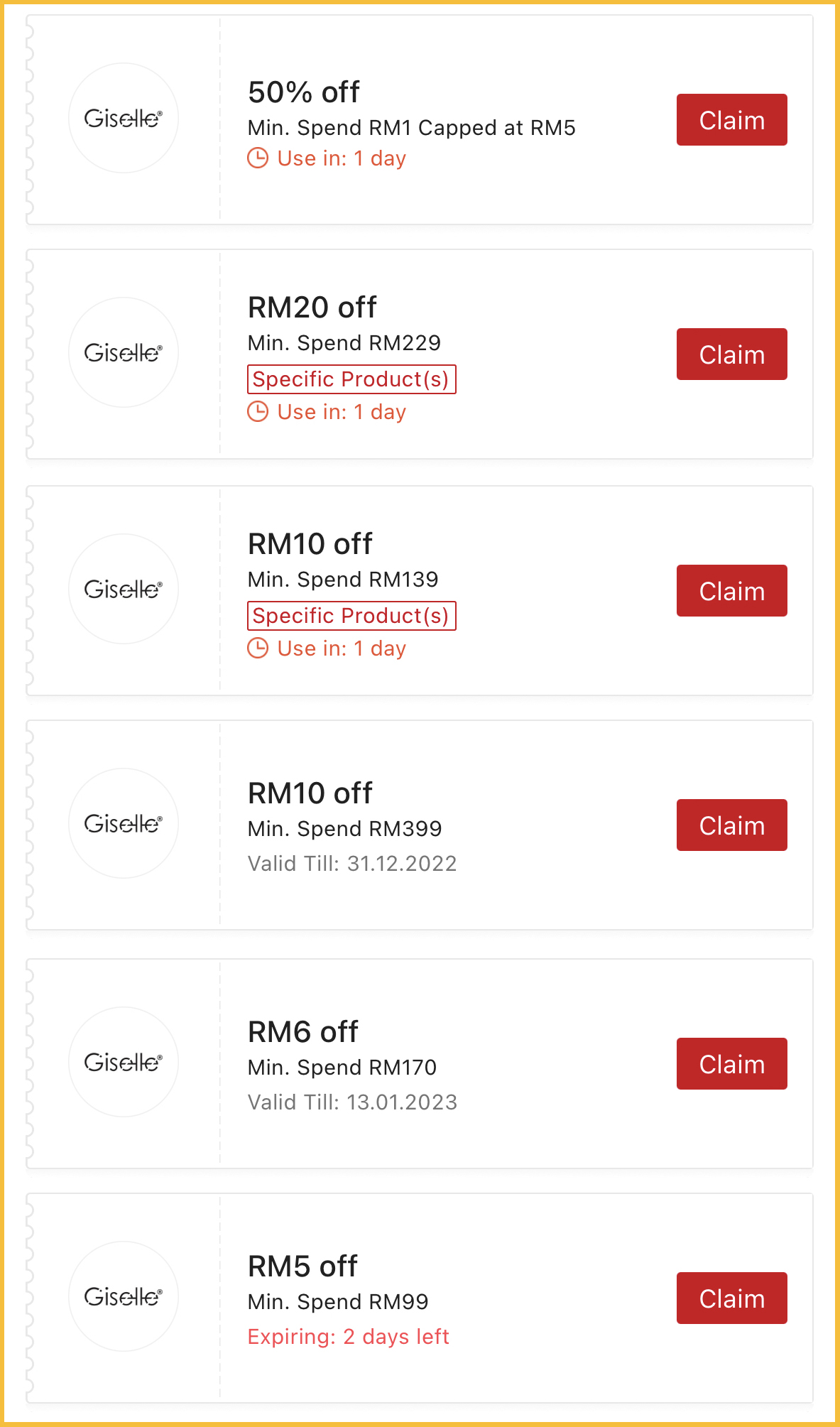 以上只是一部分而已,想知道更多其他优惠中的 Giselle 产品请【点击这里】查询哦!