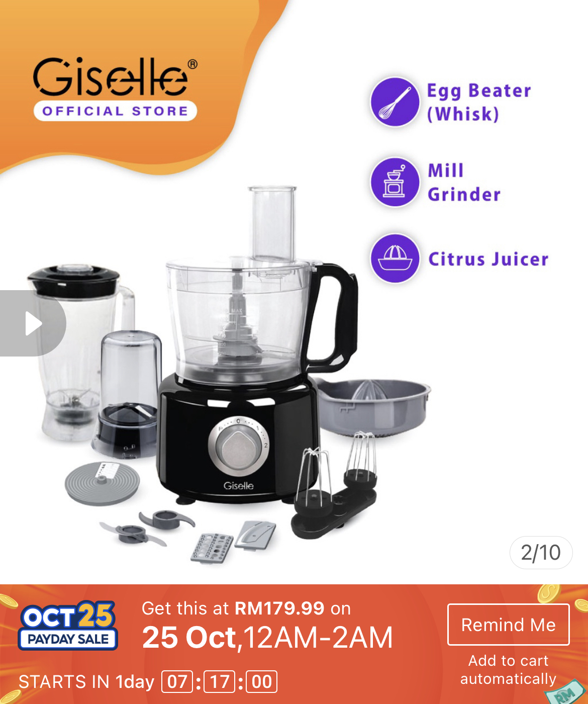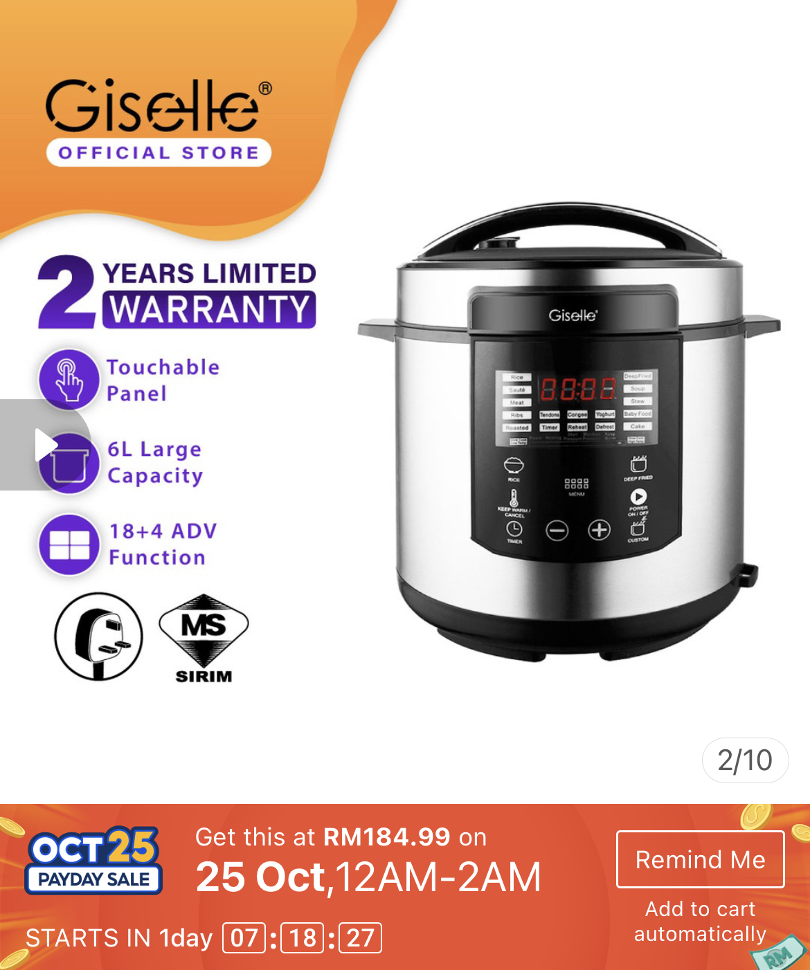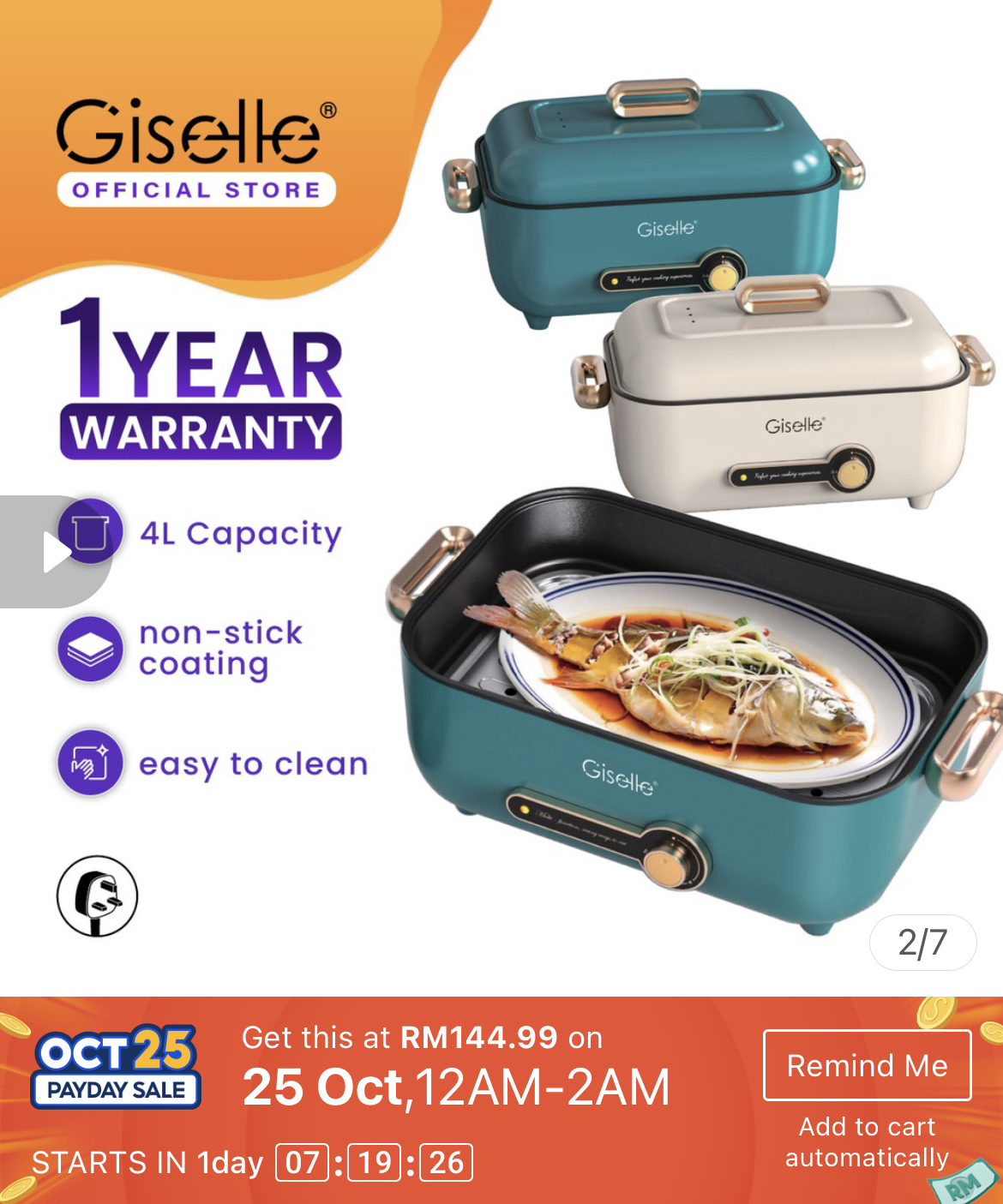 想要入手厨房家电,这次就可以买起来啦~Giselle 官方店铺推出 Payday 一日大优惠,多款产品大降价,折扣高达60%!