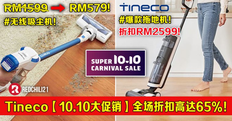 Tineco【10.10嘉年华大促销】全场折扣高达65%!高达RM150额外折扣券+Lazada Bonus再扣!