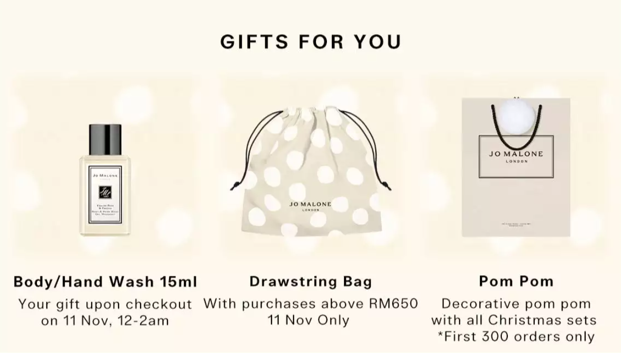 ▼ 值得注意的是,11.11当天下单再免费送 Jo Malone London 小赠品!千万别错过咯~
