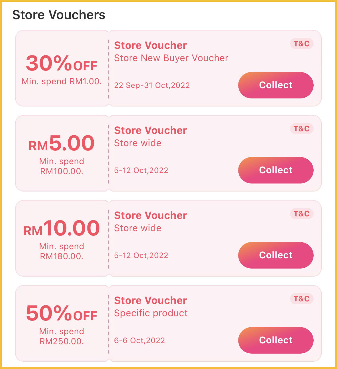 • 消费满RM100,折扣RM5