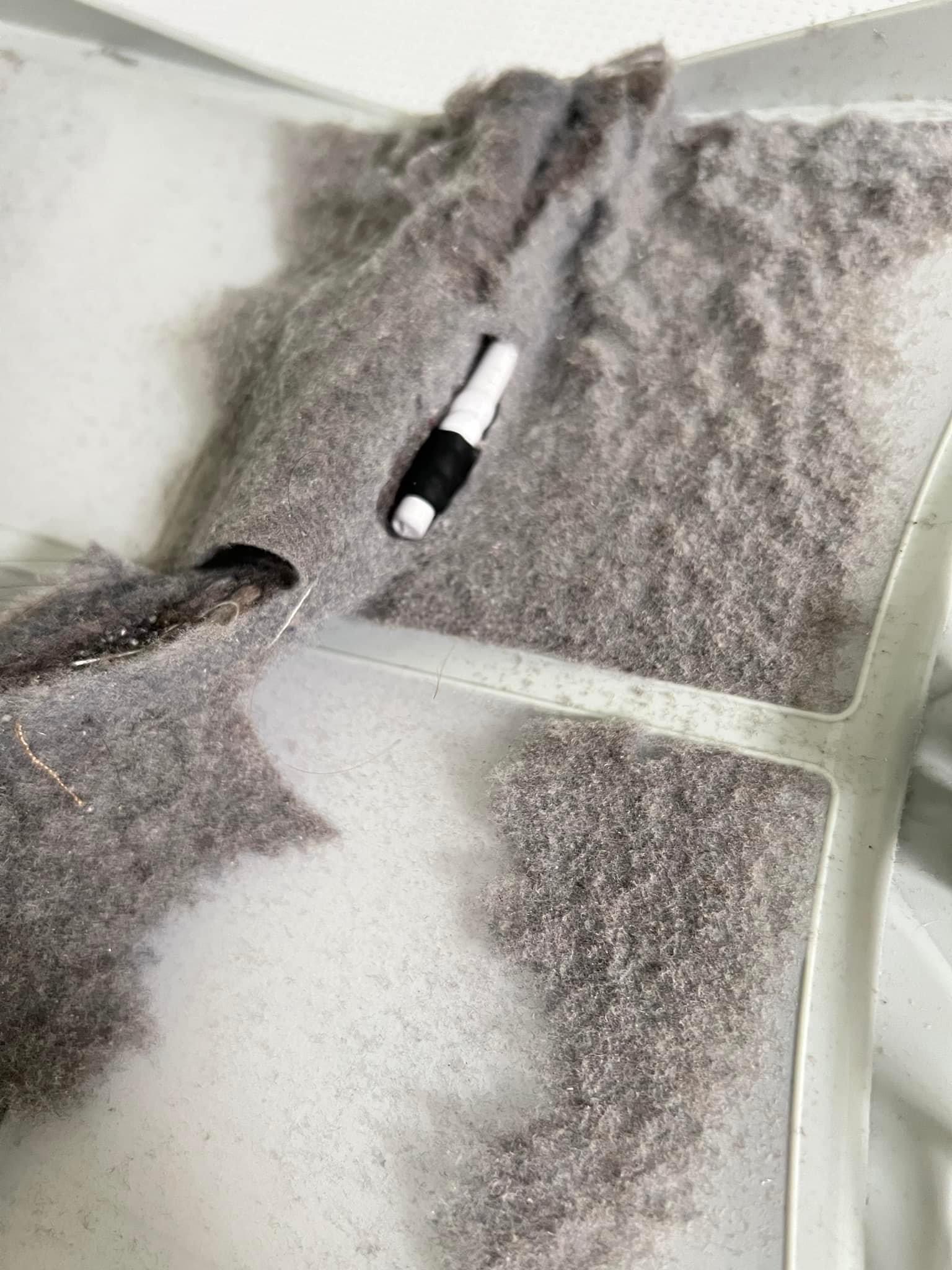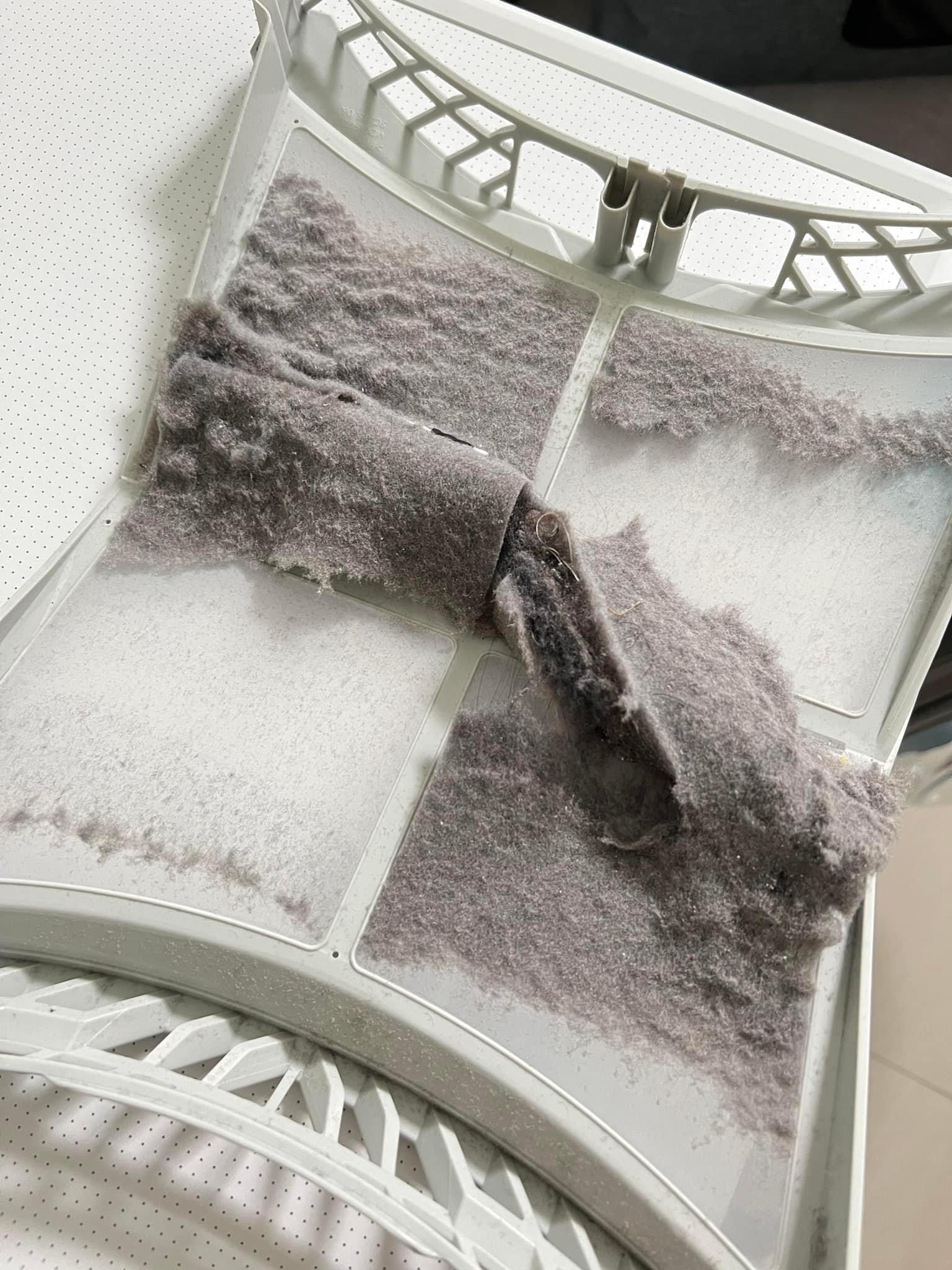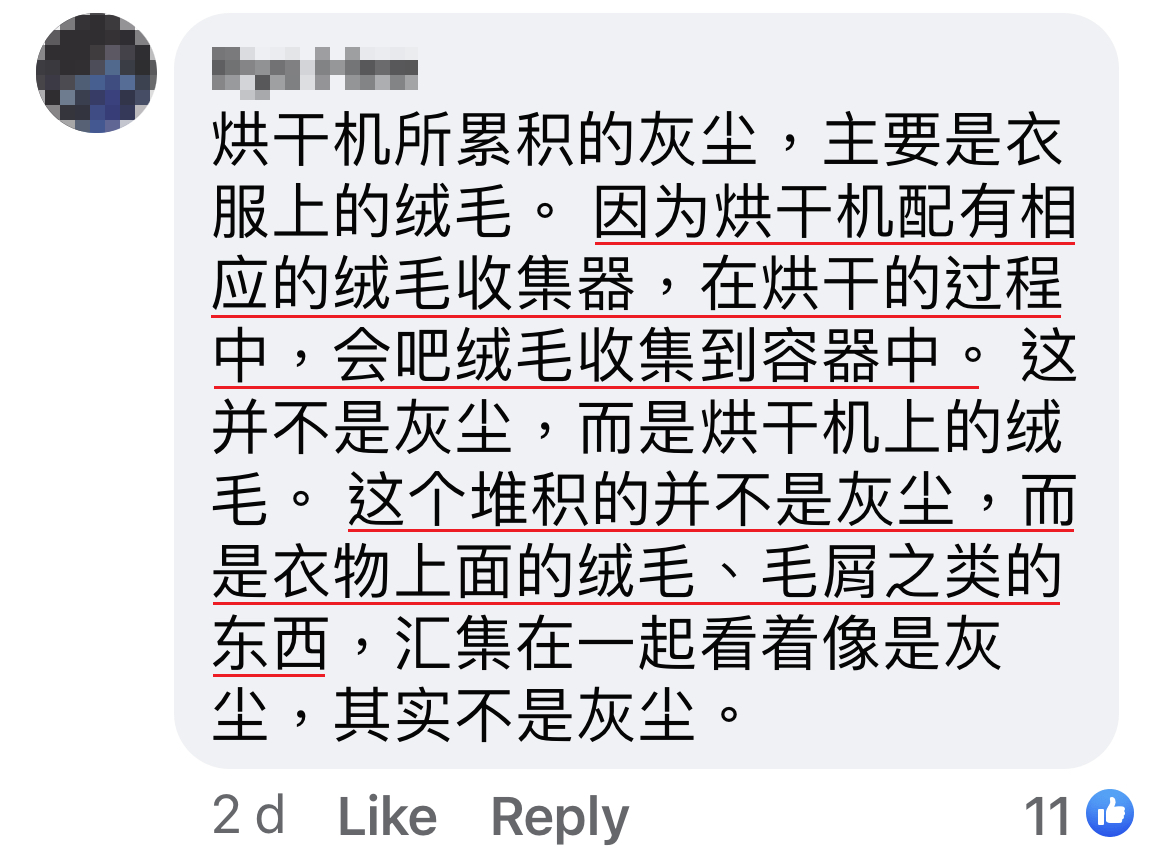 连衣服的灰尘头发、裤袋的垃圾都可以排出来,烘干机烘出来衣服的灰尘都那么多了,你想象下我们晒下外面的灰尘不是更多?