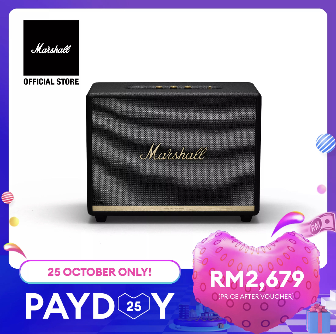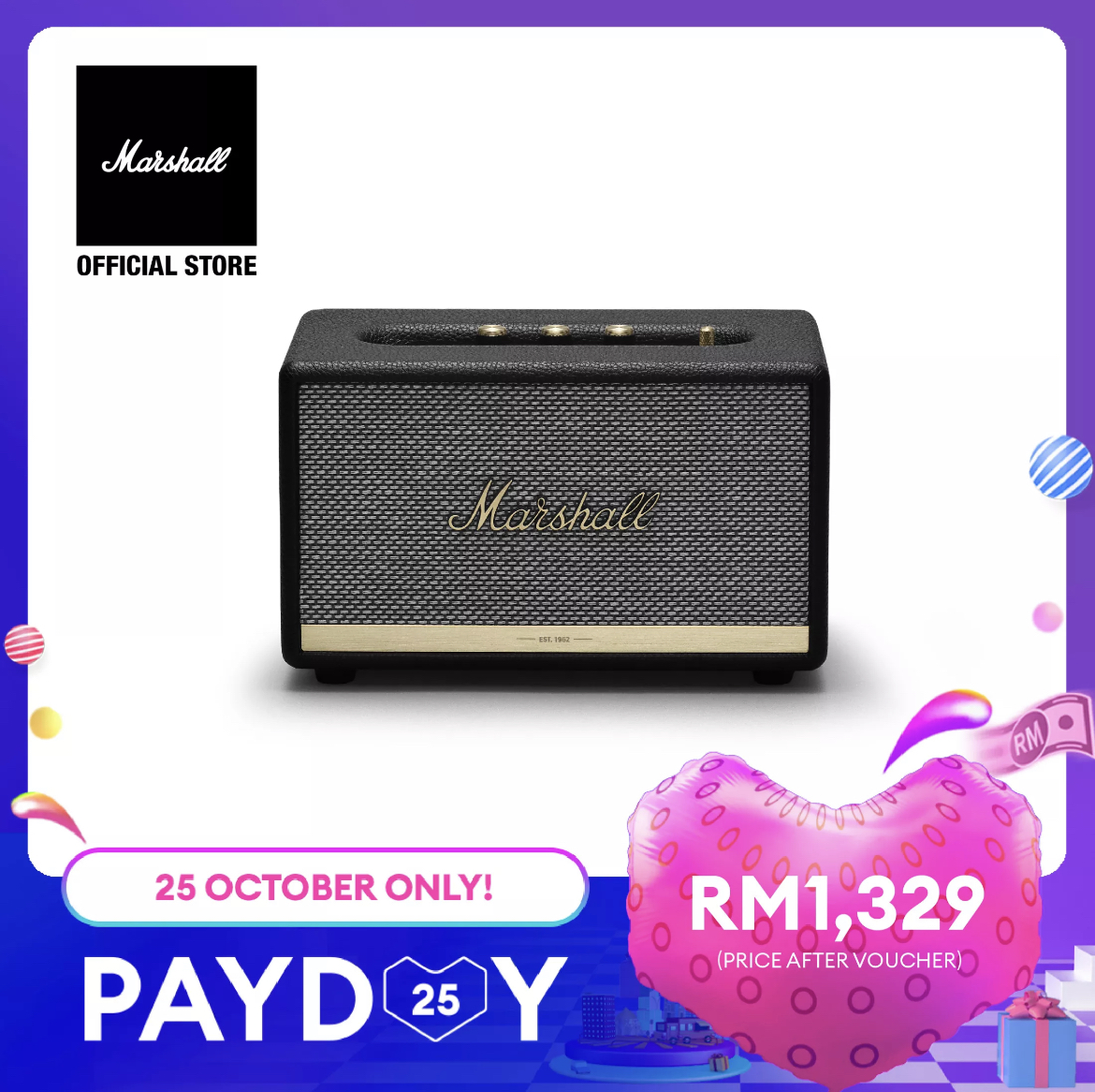 一直想要入手 Marshall 的高音质无线耳机、蓝牙音箱但又舍不得剁手?这次 Lazada 10月25日发薪日促销就是购买的好机会啦,Marshall x LazMall 官方店铺折扣再折扣!
