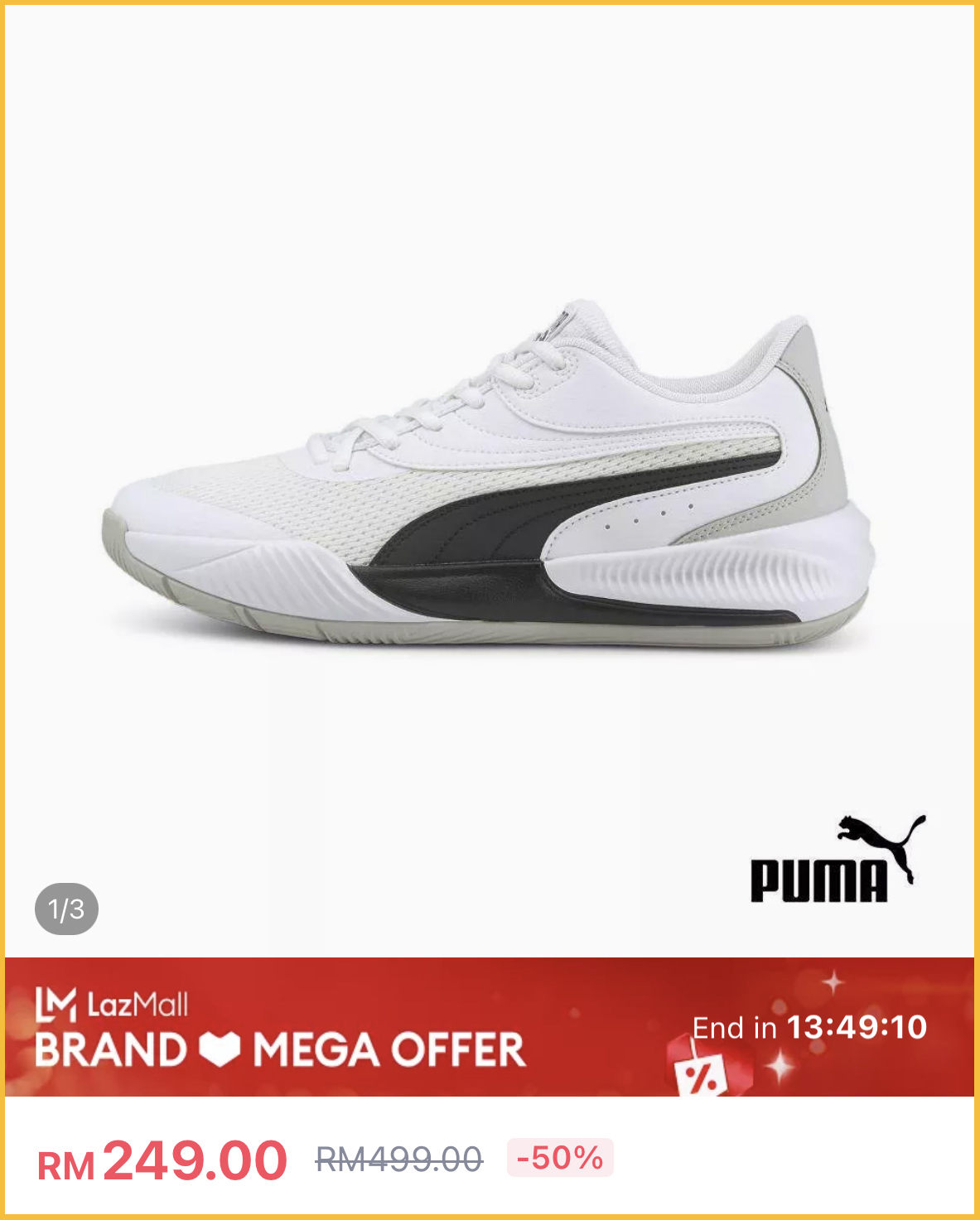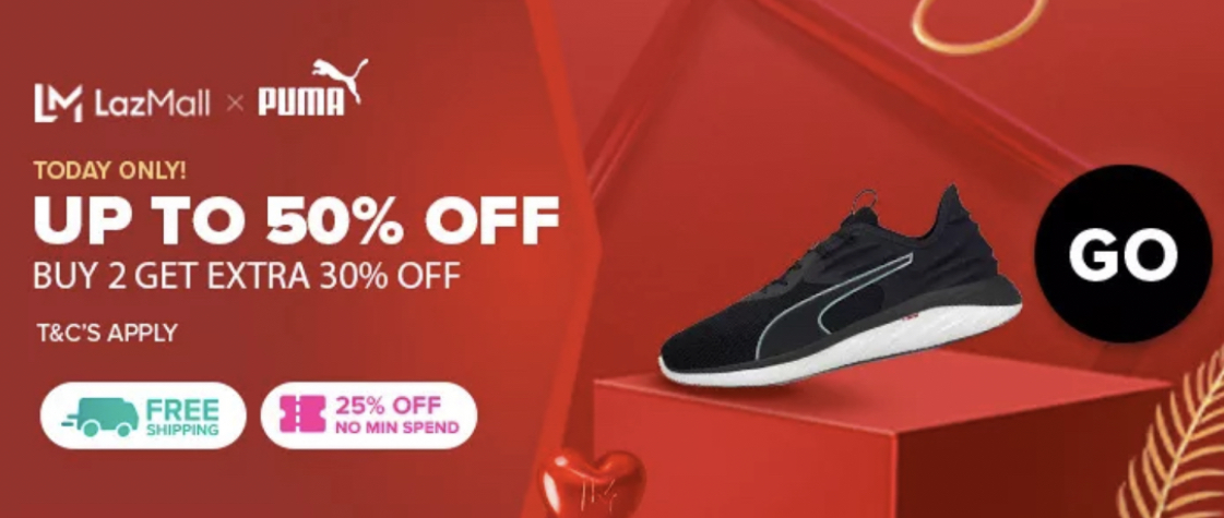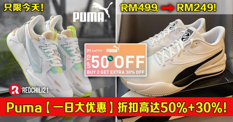 著名运动品牌 Puma 今天在 Lazada 购物平台的官方店铺举办一日大优惠,折扣高达50%,满2件再扣30%!