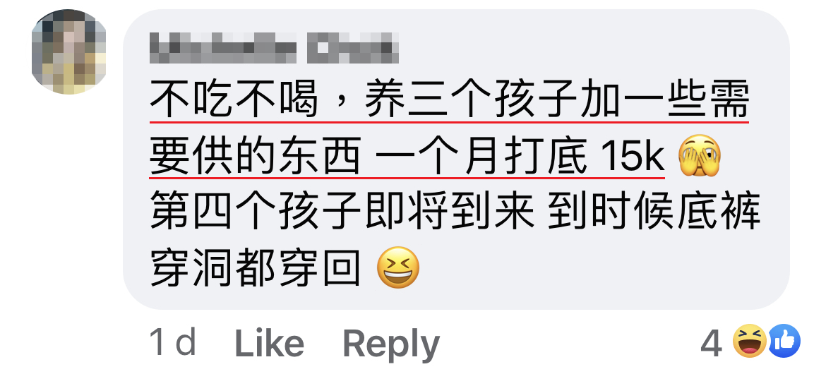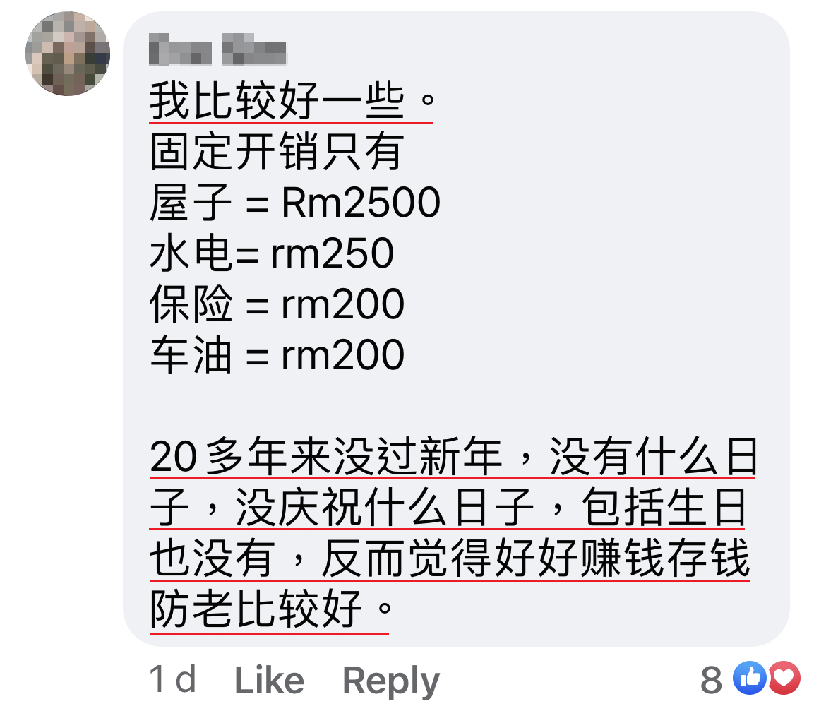 P/S:不明白为什么很多人对我的开销很感兴趣?电费我住娘家,5大2小孩,RM1200左右一个月我需要分担,水费一个月RM100。