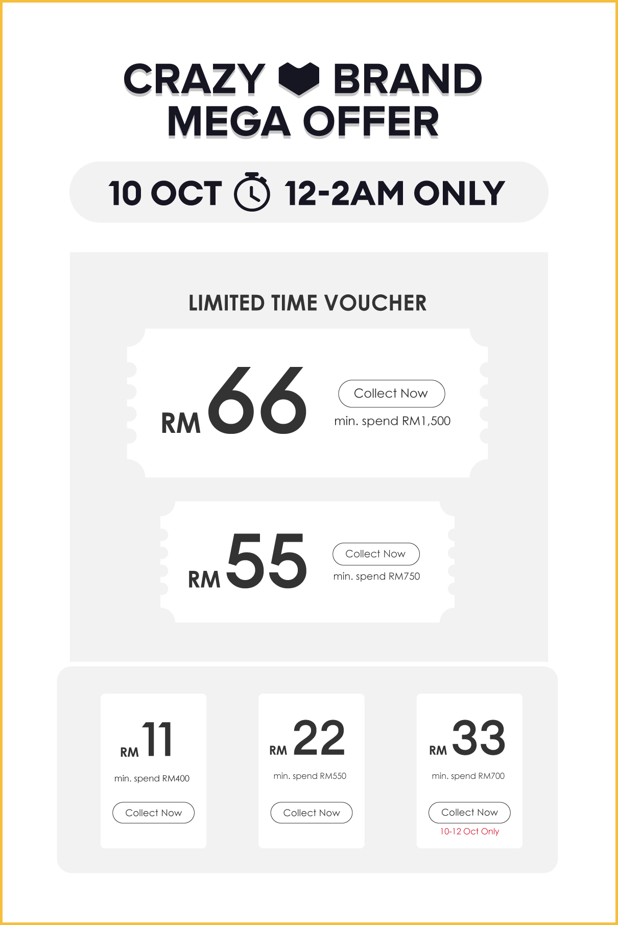 ▼ 10月10日当天凌晨12点至2点,还有高达RM66的限时优惠券哦!