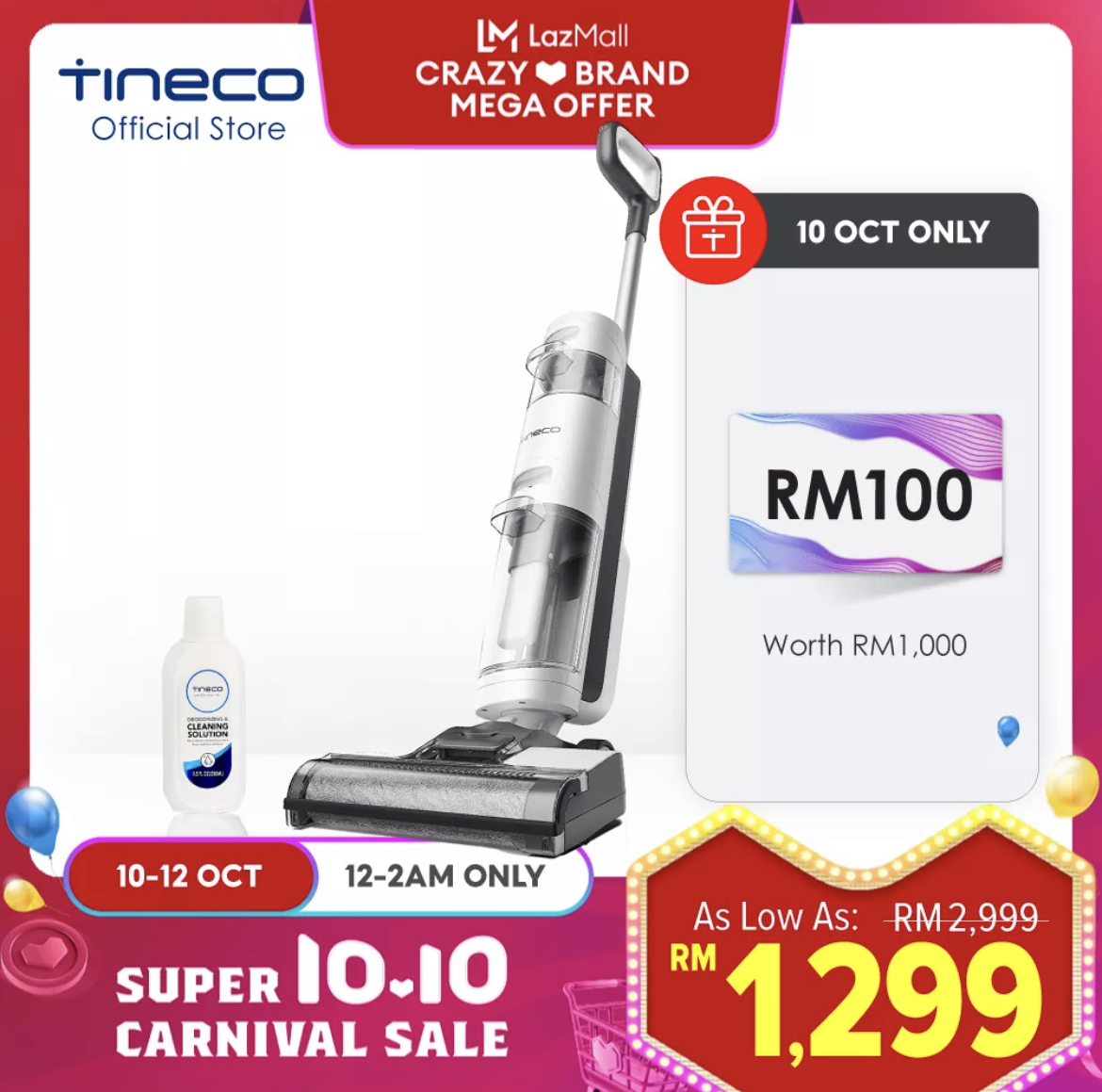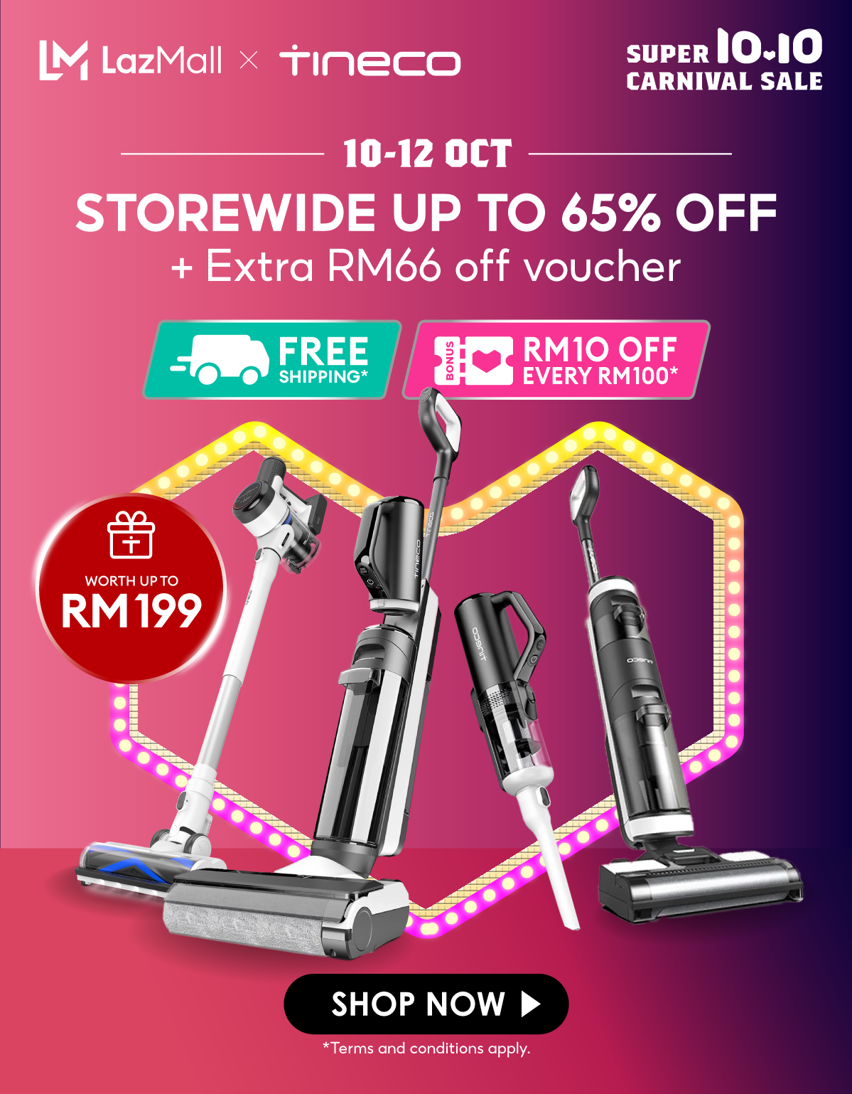 这次双十购物节 Tineco x LazMall 超级嘉年华全场折扣高达65%,加额外折扣高达RM150!别忘了还有 Lazada Bonus 再扣呢!