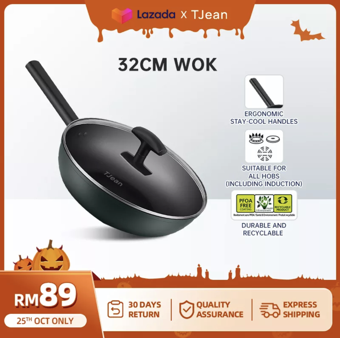 ▪ ⑧ TJean Non Stick Wok 32CM Stir-fry Pan with Lid 锅具