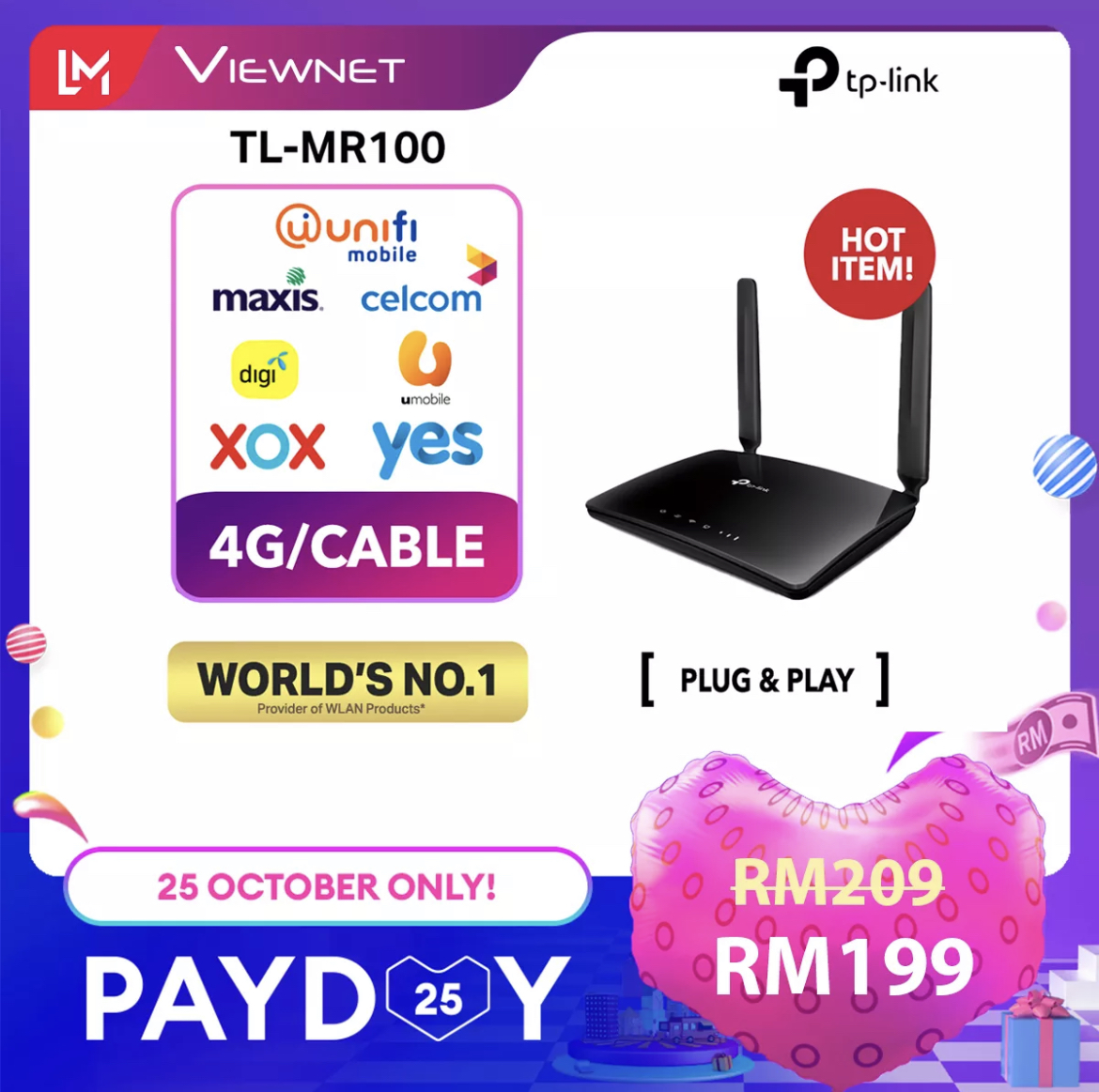 这次 Lazada 的 Payday 大促销,著名品牌 TP-Link 多款商品都有折扣,其中就包括了他们家的路由器!